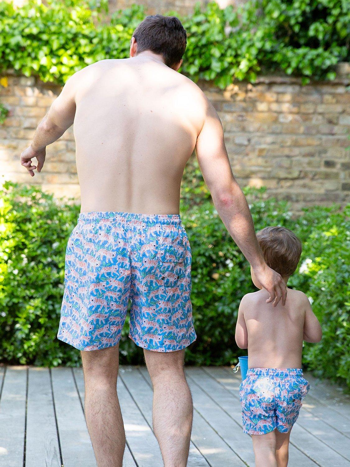 Match your little one with these tiger swimshorts. Featuring a drawstring waist, back patch pocket and mesh lining. They are also made in a quick dry fabric which provides UPF 50+ sun protection to give you peace of mind while enjoying the warm weather.