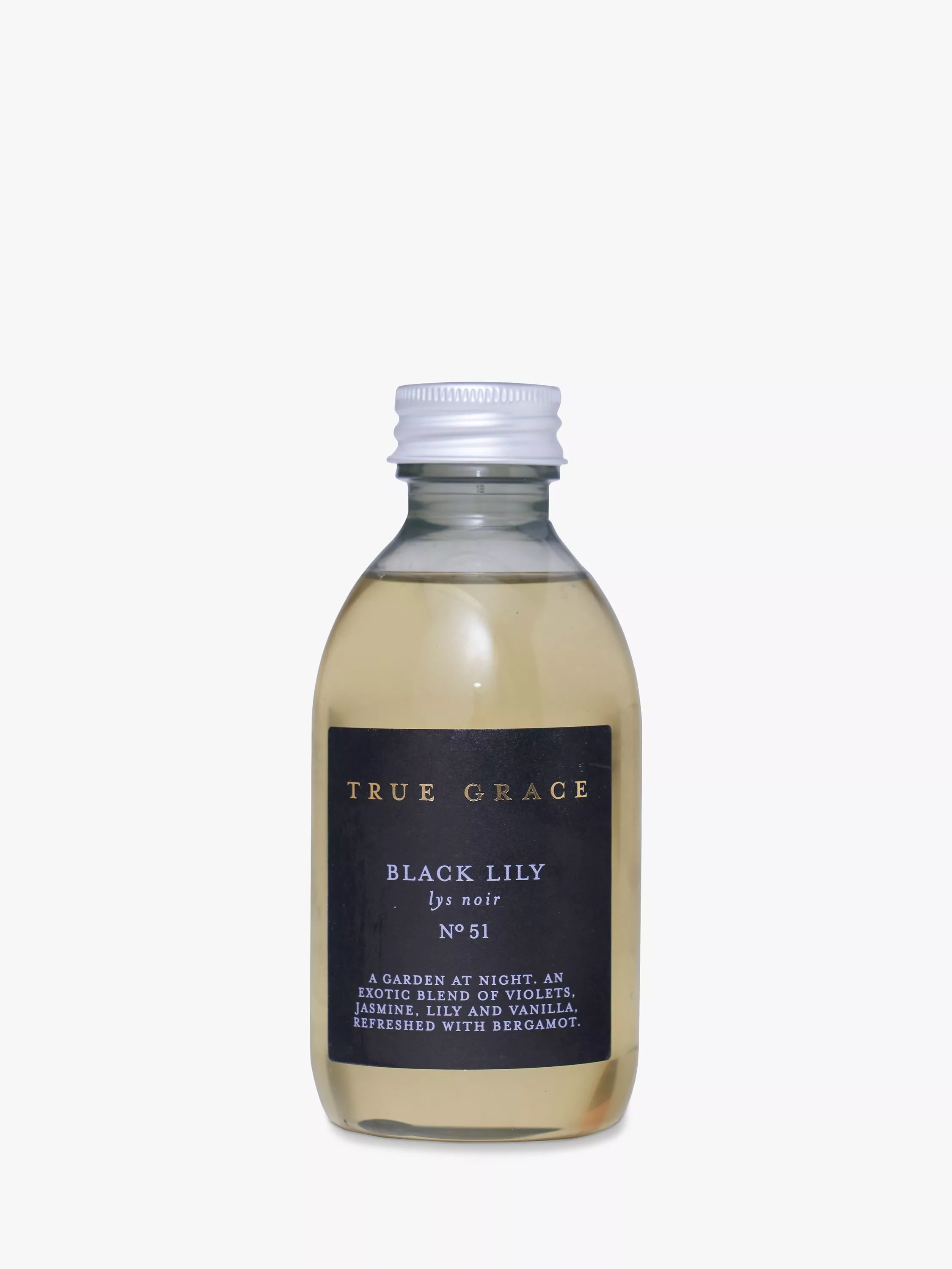 A garden at night. An exotic blend of violets, jasmine, lily, and vanilla, refreshed with bergamot.