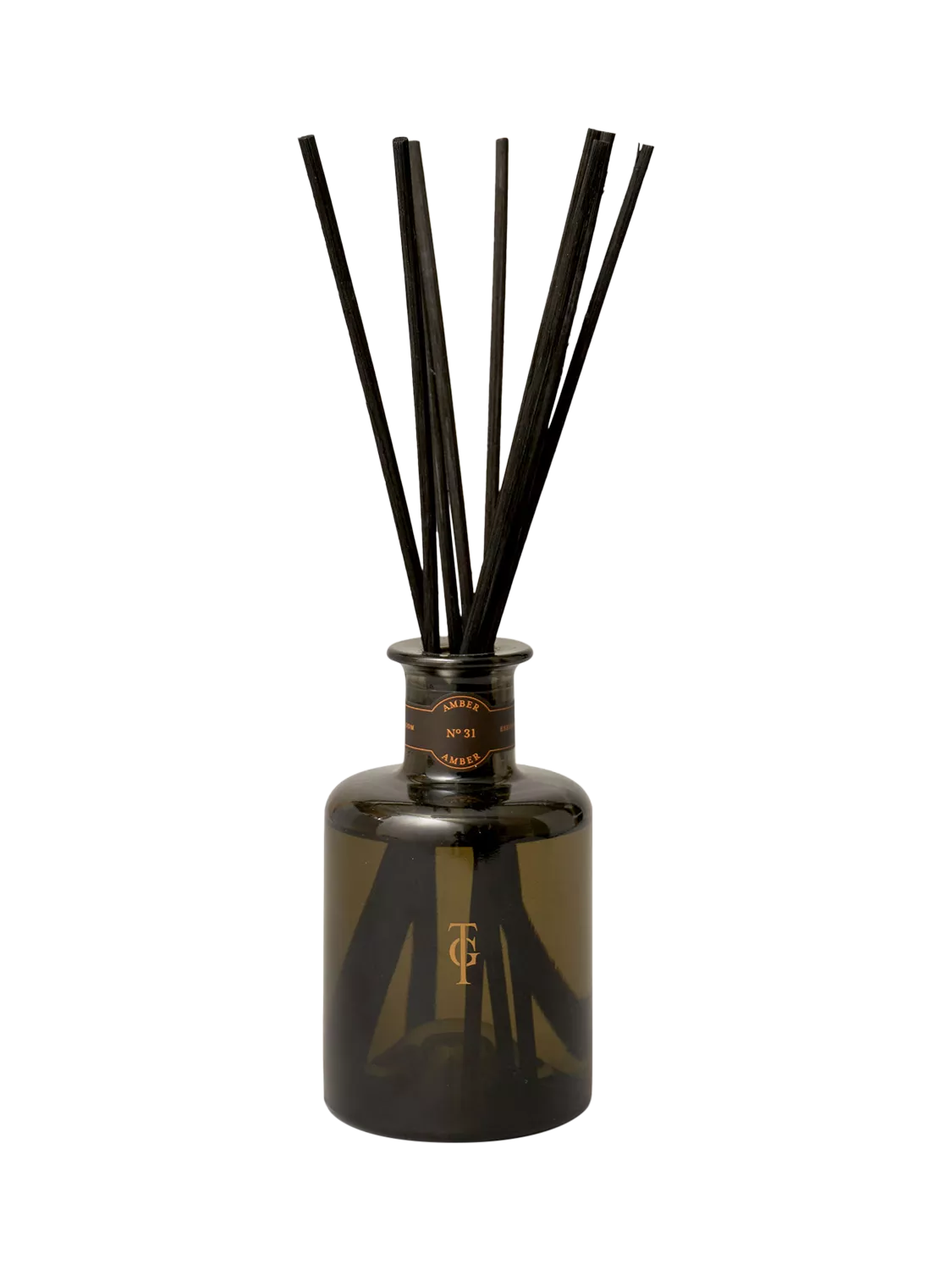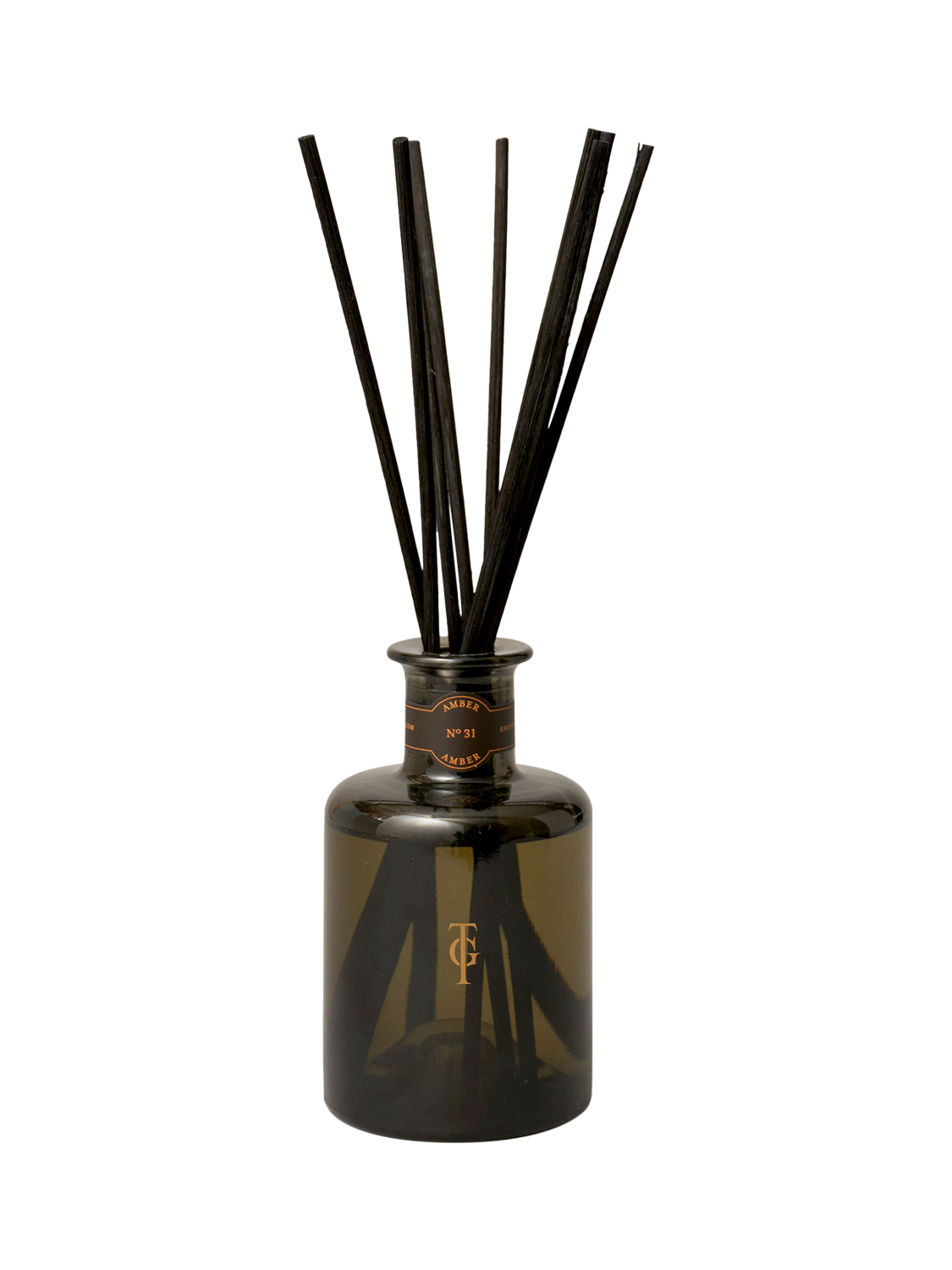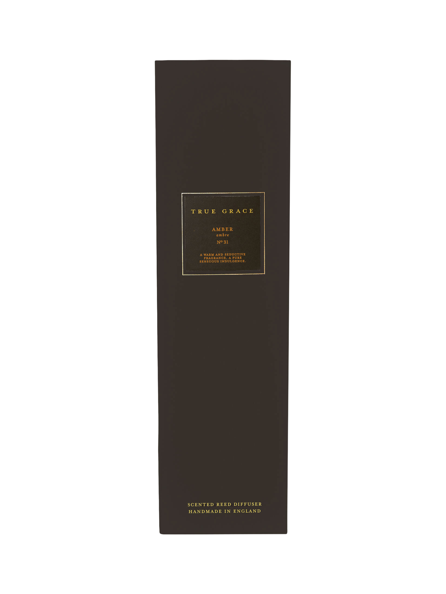 The Amber Diffuser Set fills the room with a relaxing and calming scent. Made in small batches at True Grace's Wiltshire factory and fragrant with notes of Amber, Myrrh, Lavender and Bergamot, this Manor diffuser is perfect for keeping the bedroom or living room, fresh. Presented in an opulent, softly smoked glass bottle, this diffuser contains 20% fragrance – the equivalent of a ‘pure perfume’ and stays fresh for up to 10 weeks.