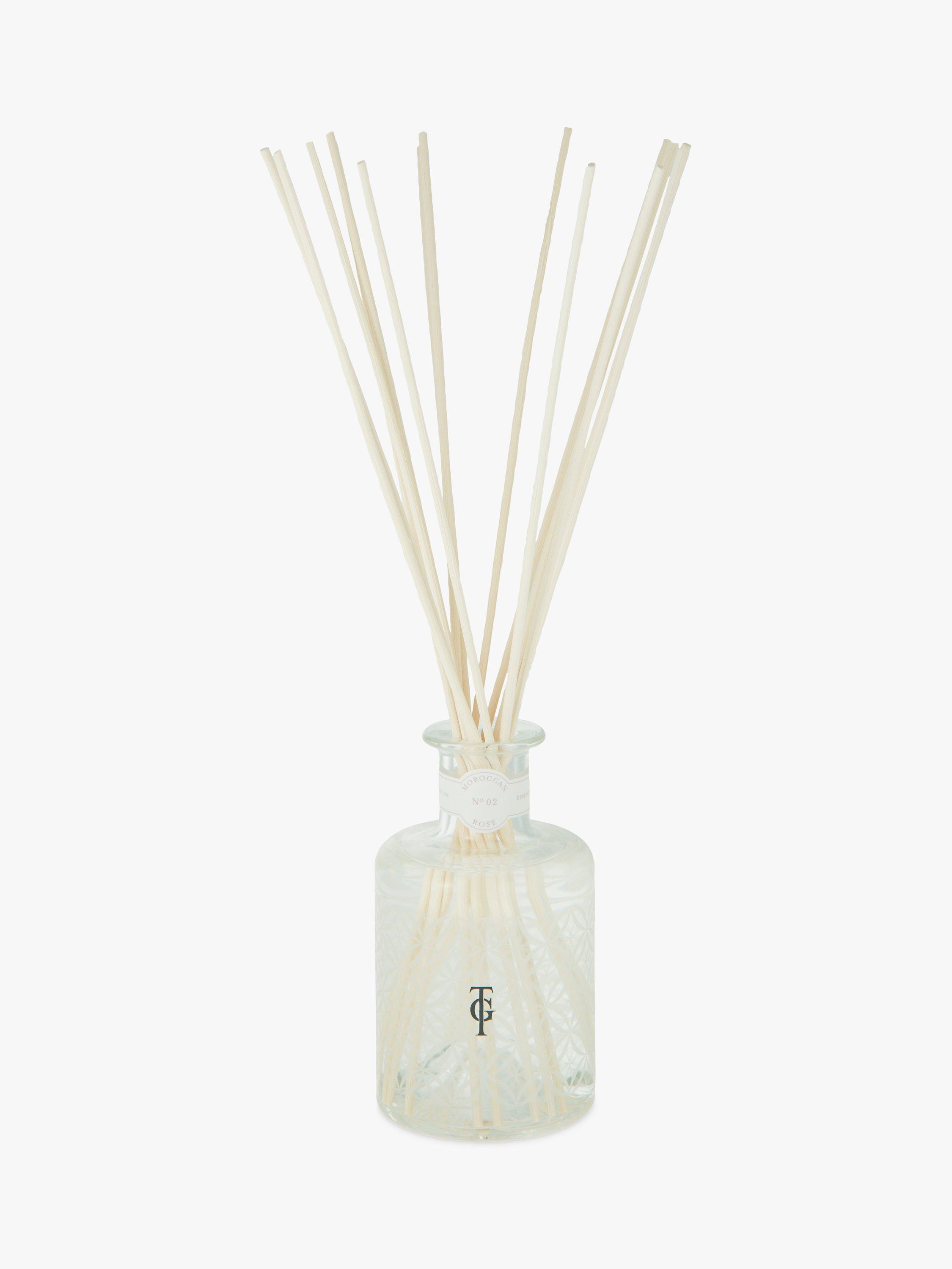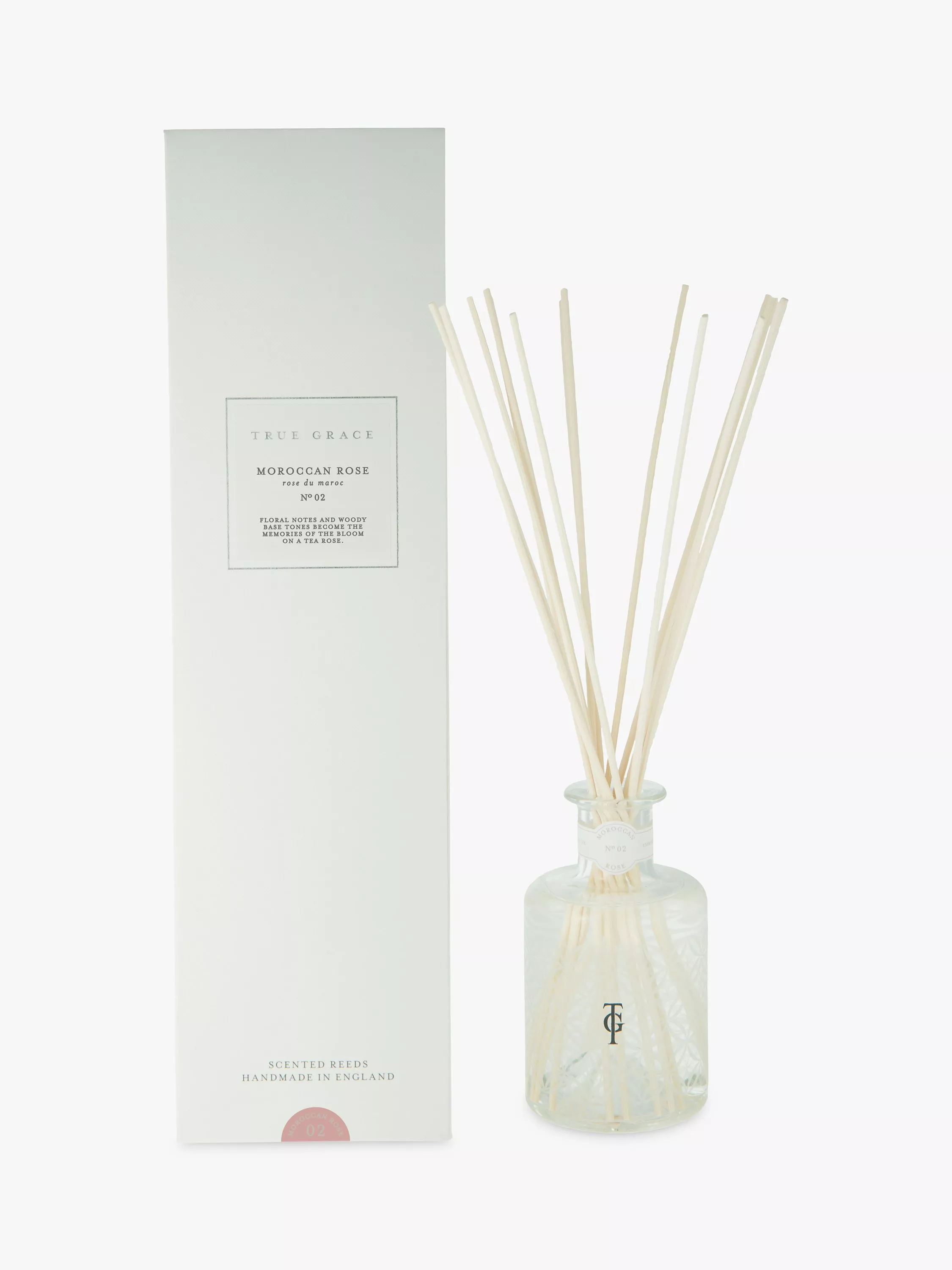 Luxury diffuser set. With fibre sticks that absorb the intensely scented oil, and gently release the fragrance of mysterious, sensuous rose into the room.