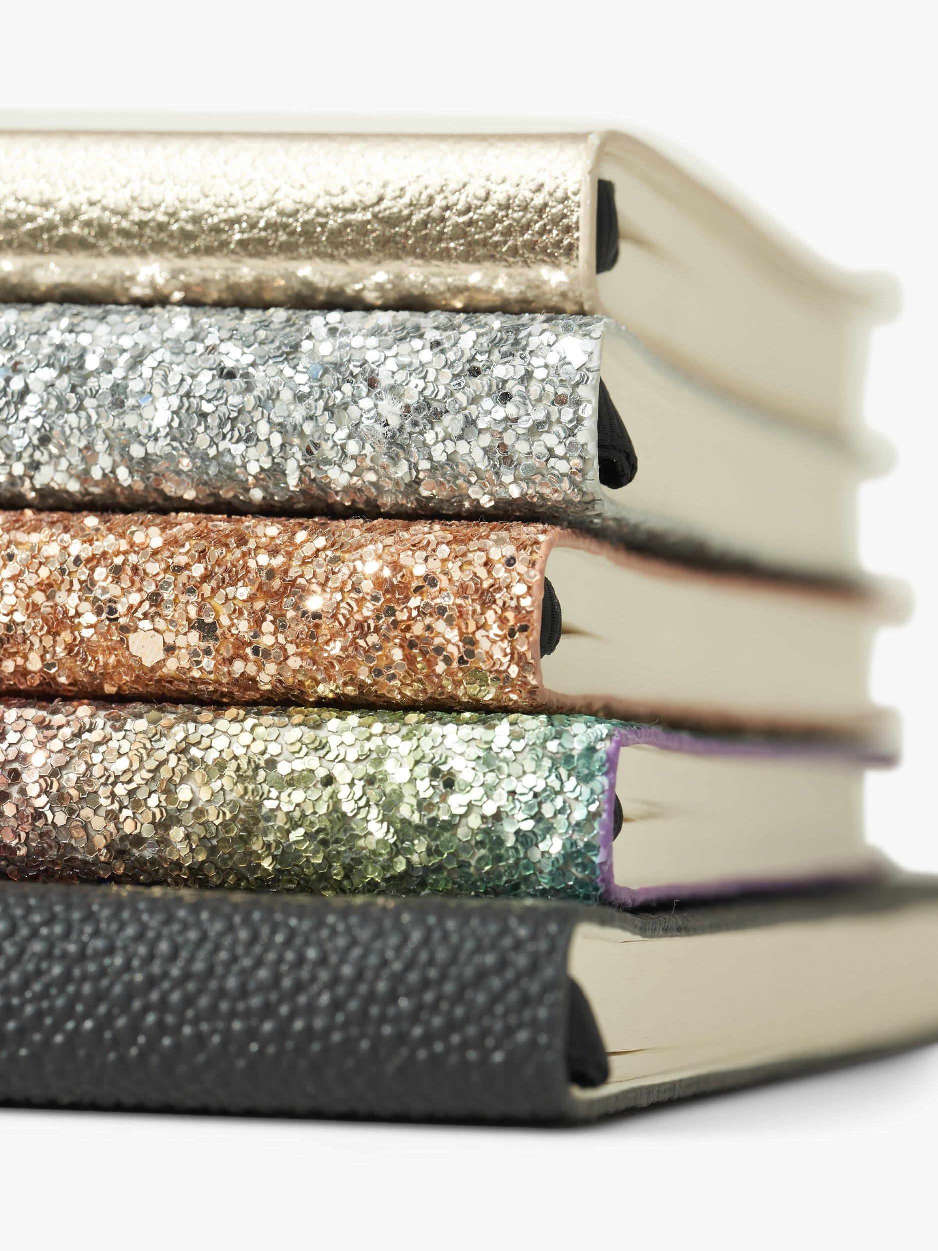 Unleash your creativity with this stunning A5 Notebook. Crafted with a shimmering cover, this notebook is as stylish as it is functional. Inside, you'll find lined pages ensuring your writing experience is refined.