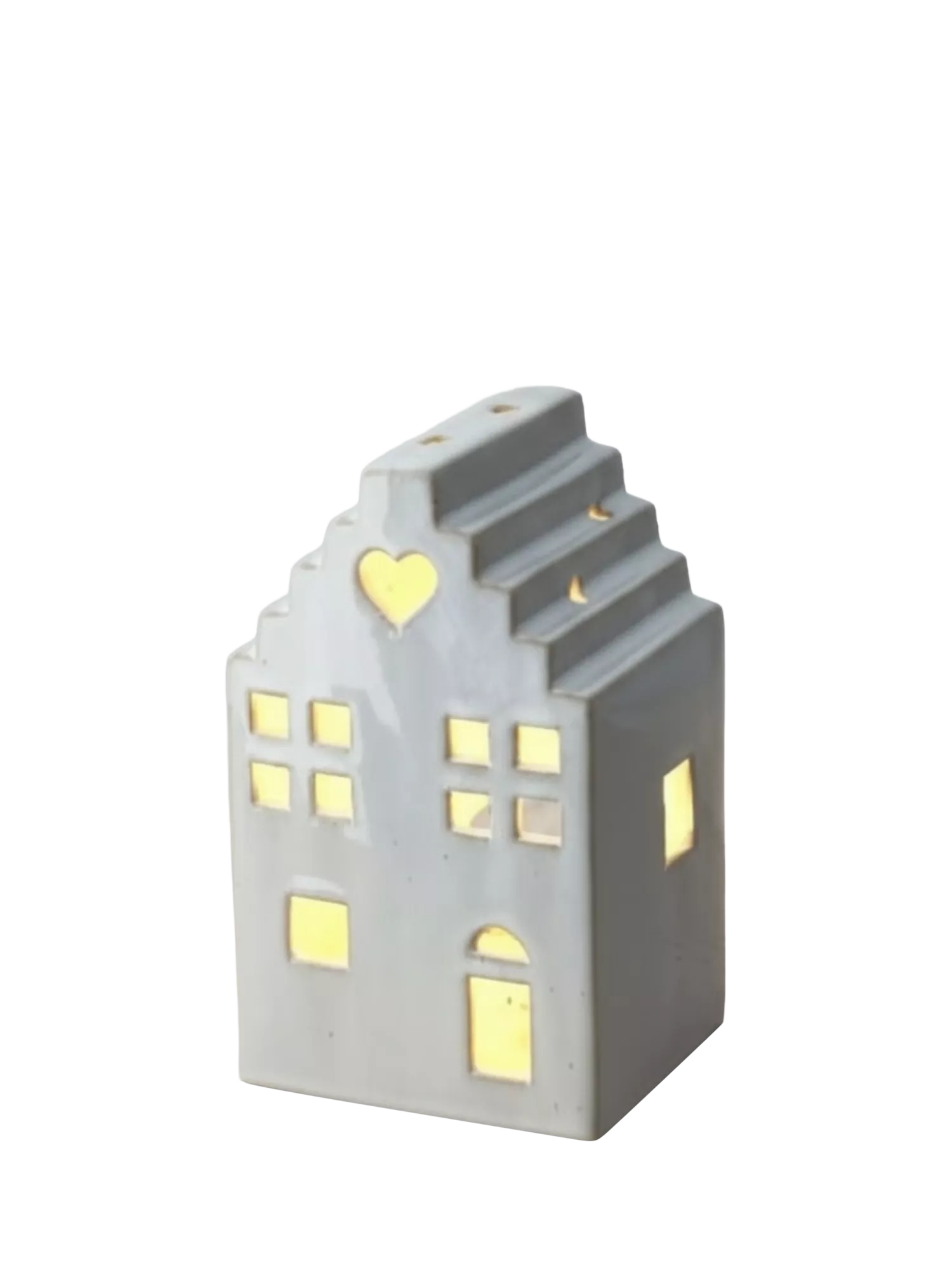 TrulyCeramic House Tealight Holder, Grey, H17cm