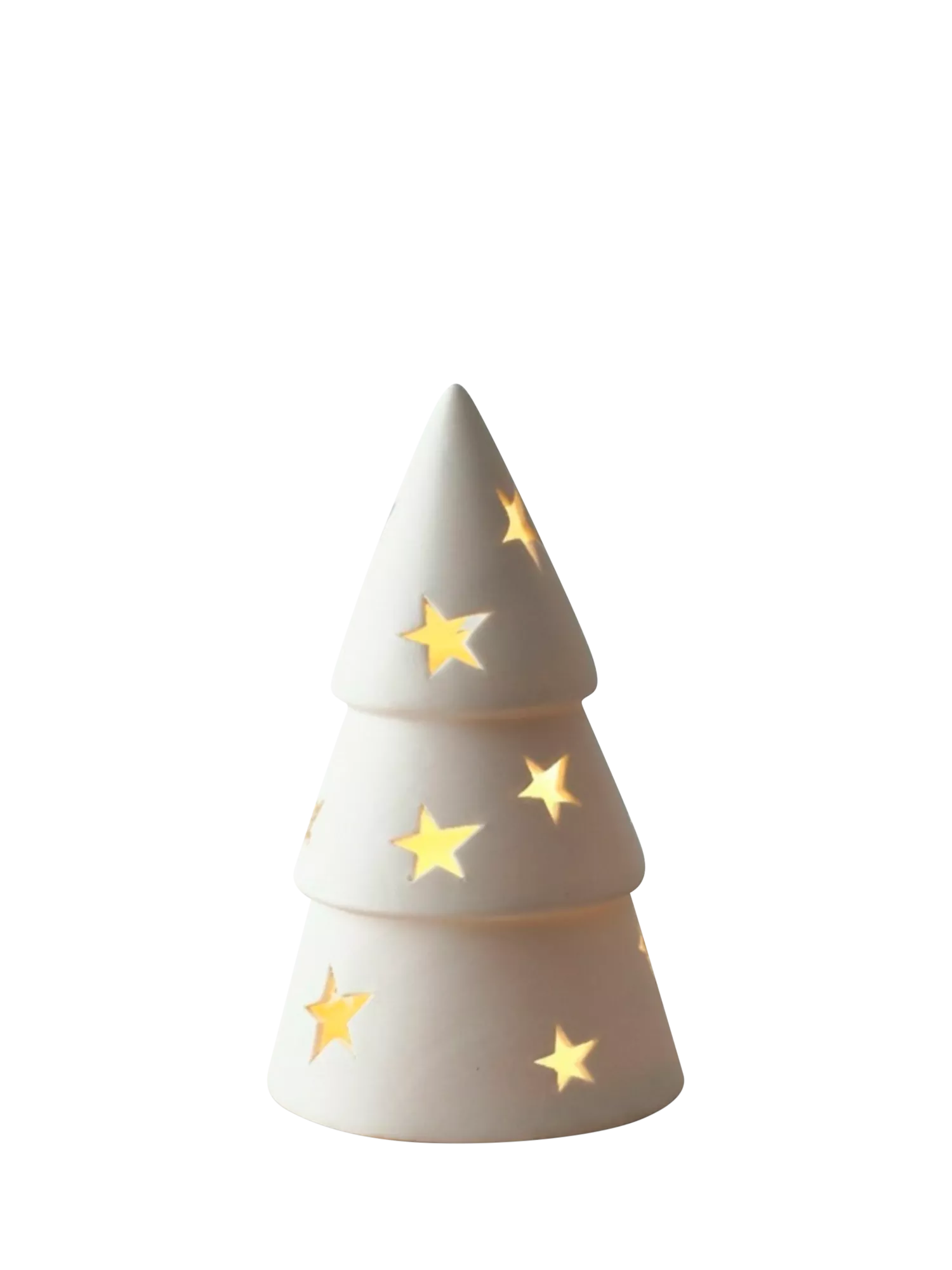 Featuring intricate star cut-outs designed to transform illumination into an enchanting narrative, this elegant glazed ceramic tree awaits your chosen light source (LED or tea light, not included). Its refined presence invites collectors to curate magical moments, offering a nuanced interpretation of holiday ambience that elevates every space with understated, sophisticated charm.