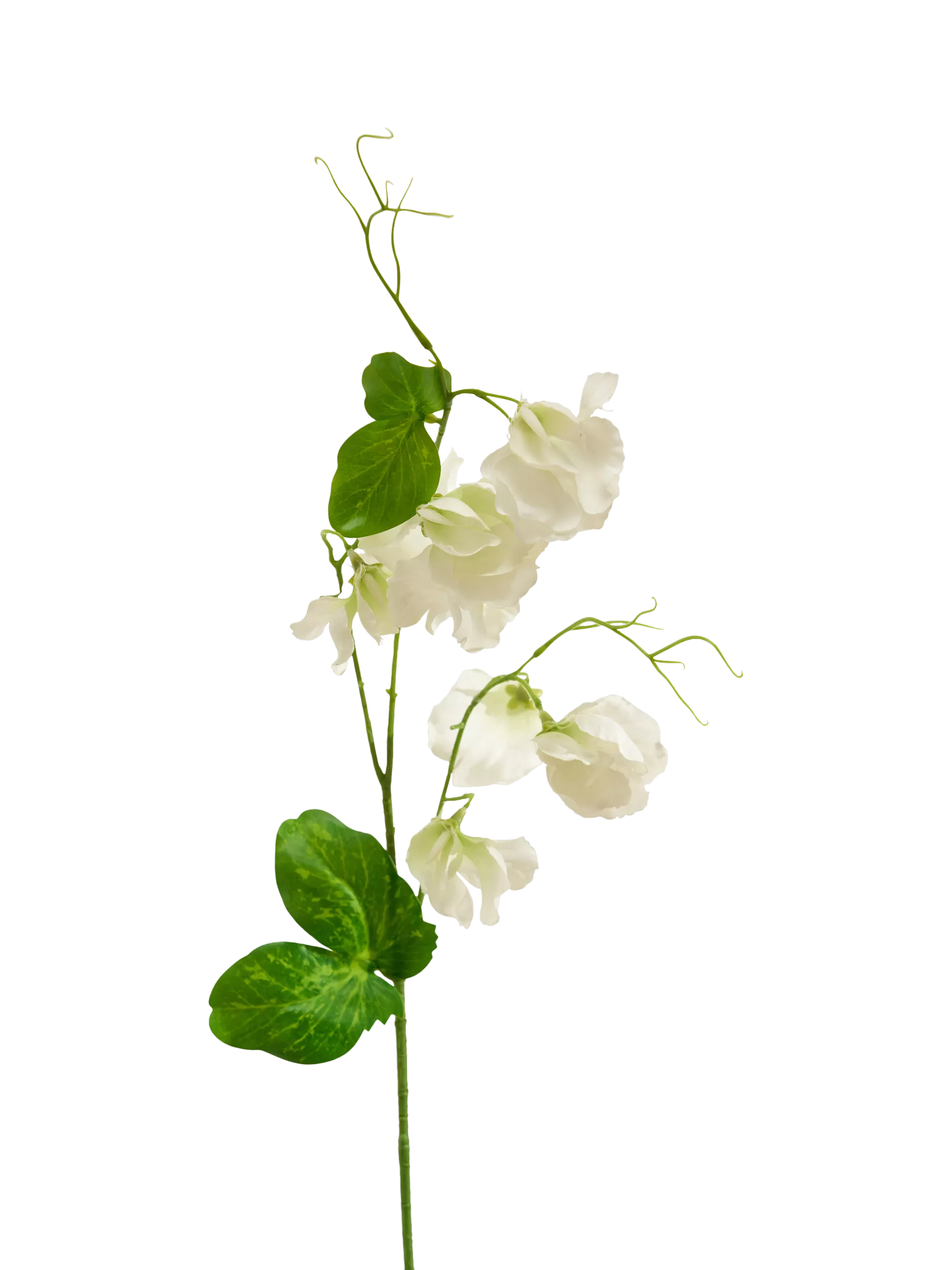 Delicate and romantic, this white faux sweet pea stem captures the charm of freshly picked blooms with softly ruffled petals and a graceful silhouette. At 71cm tall, it adds lightness and height to any floral display.