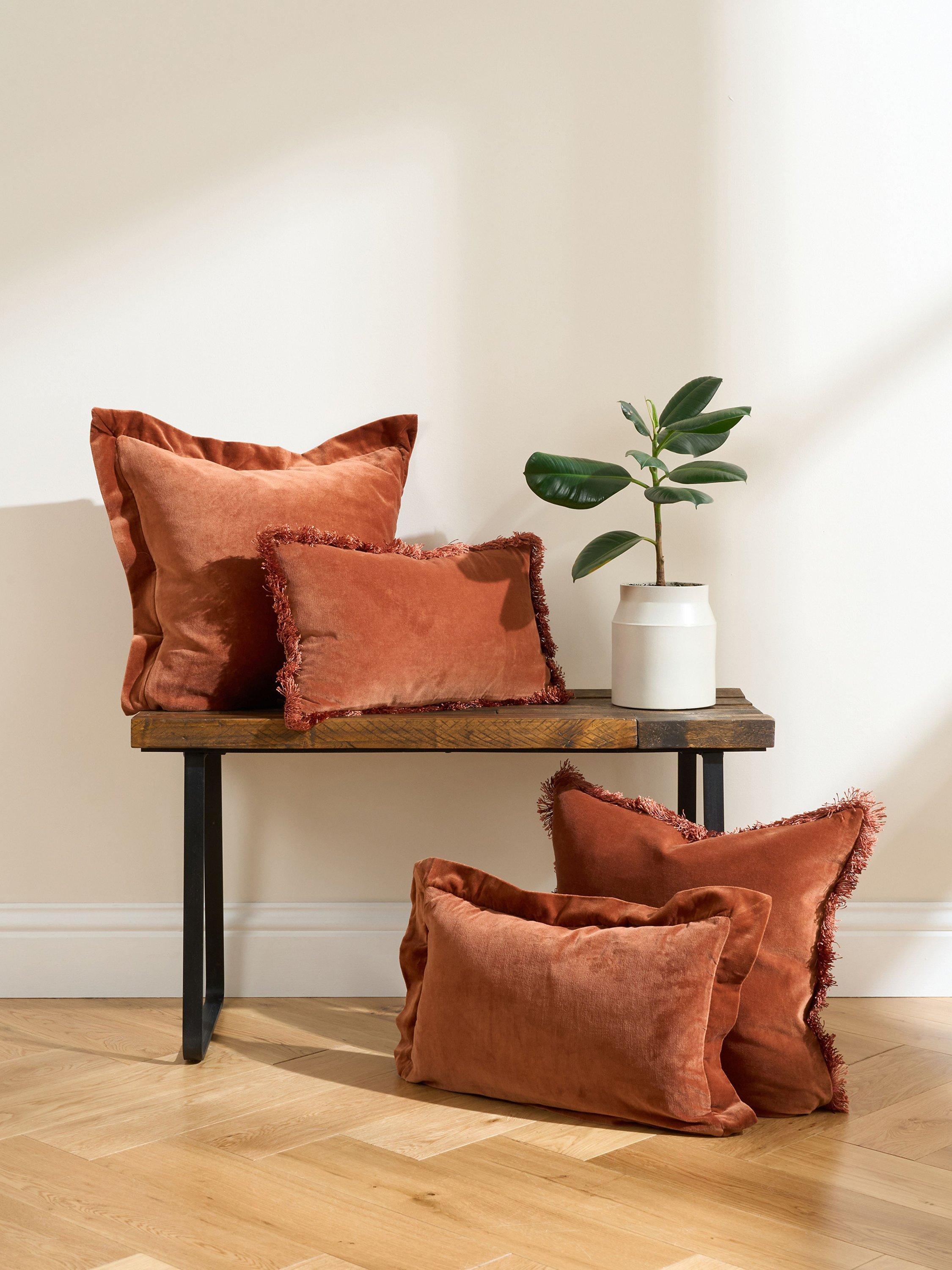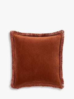 TrulyFringed Square Velvet Cushion, Burnt Orange