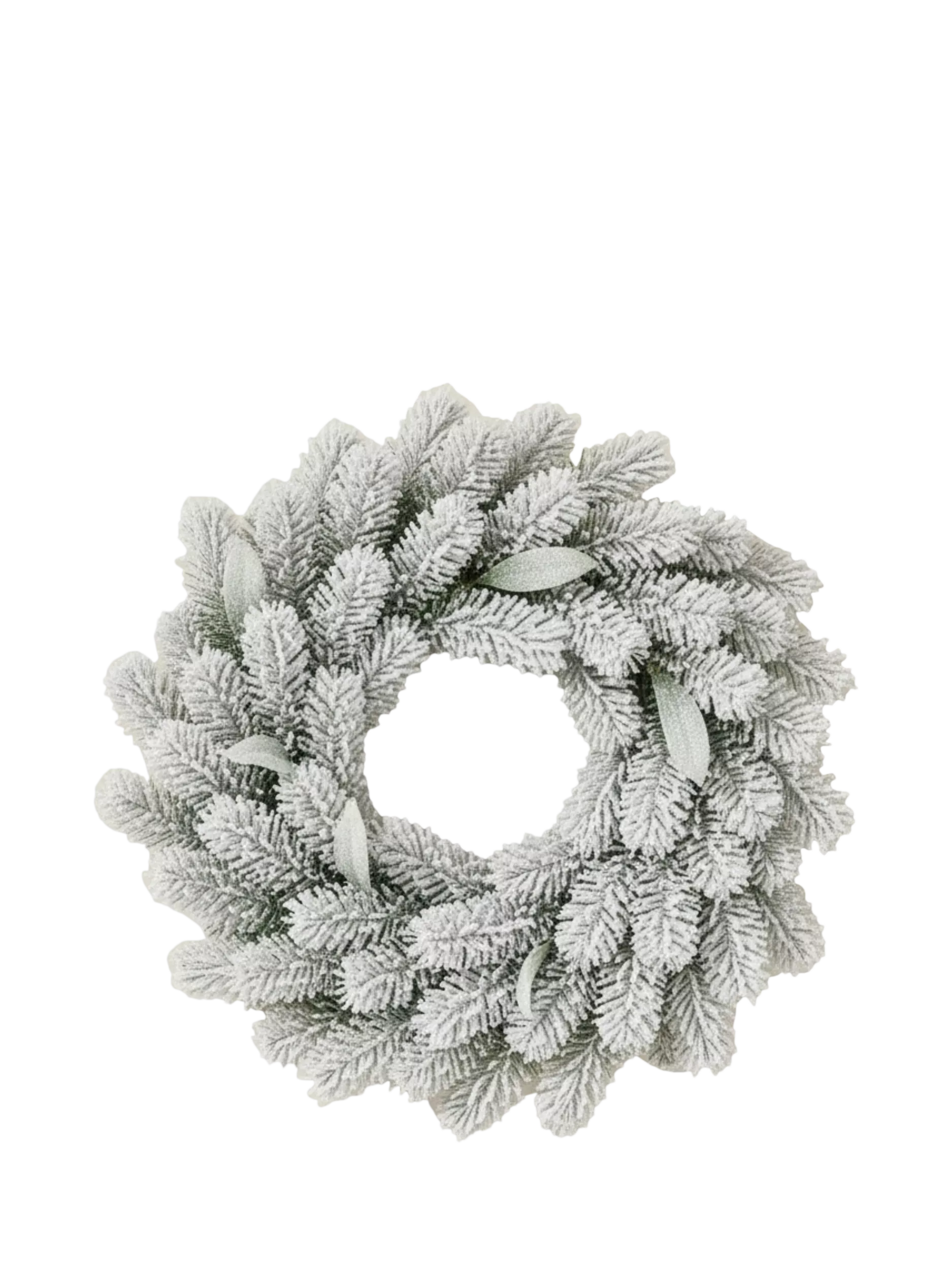 Measuring 50cm in diameter, this stunning wreath features snow-dusted pine branches that create a beautifully wintry effect—perfect for adding a touch of frosted charm to your festive decor.