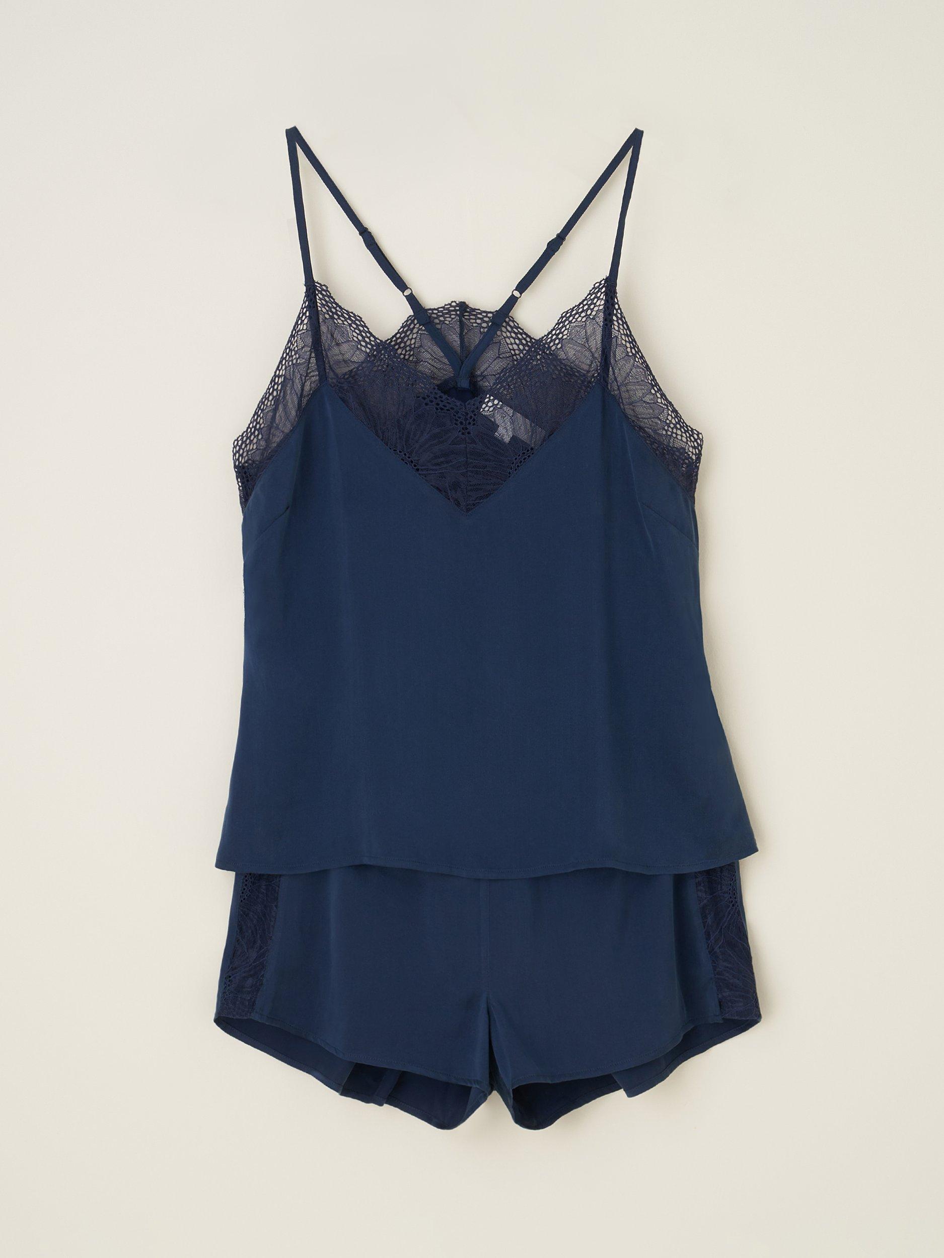 Made from beautiful silk satin, Truly's Isabel pyjama set details a lace-trimmed camisole top with adjustable delicate straps and shorts with an elasticated waist and lace side panel. The 16 momme silk fabric is made from sand washing giving it an incredibly soft texture and beautiful matte finish. This is the perfect set to elevate your downtime wardrobe or wear the camisole out under a smart blazer.