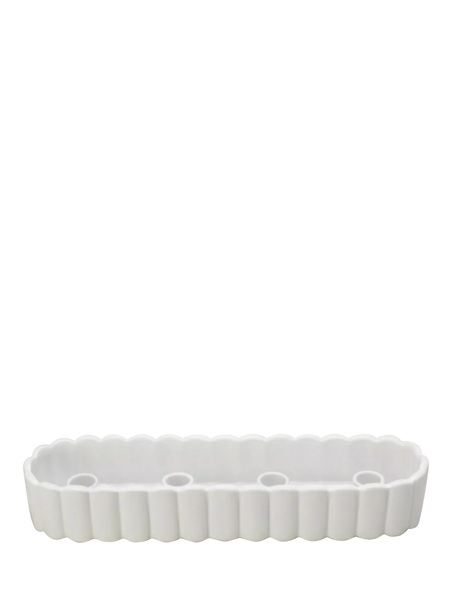 Create a warm, inviting atmosphere with this elegant ribbed candle holder, designed to hold four standard dinner candles. The ribbed texture adds subtle detail, while the clean finish complements any colour palette or seasonal style.