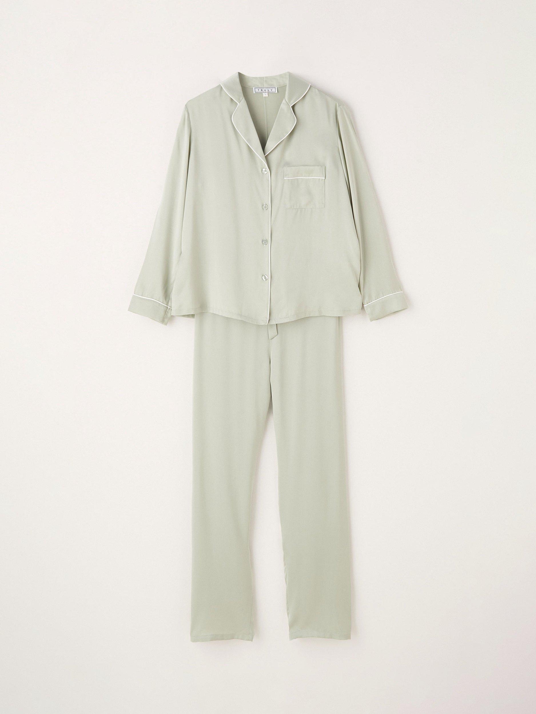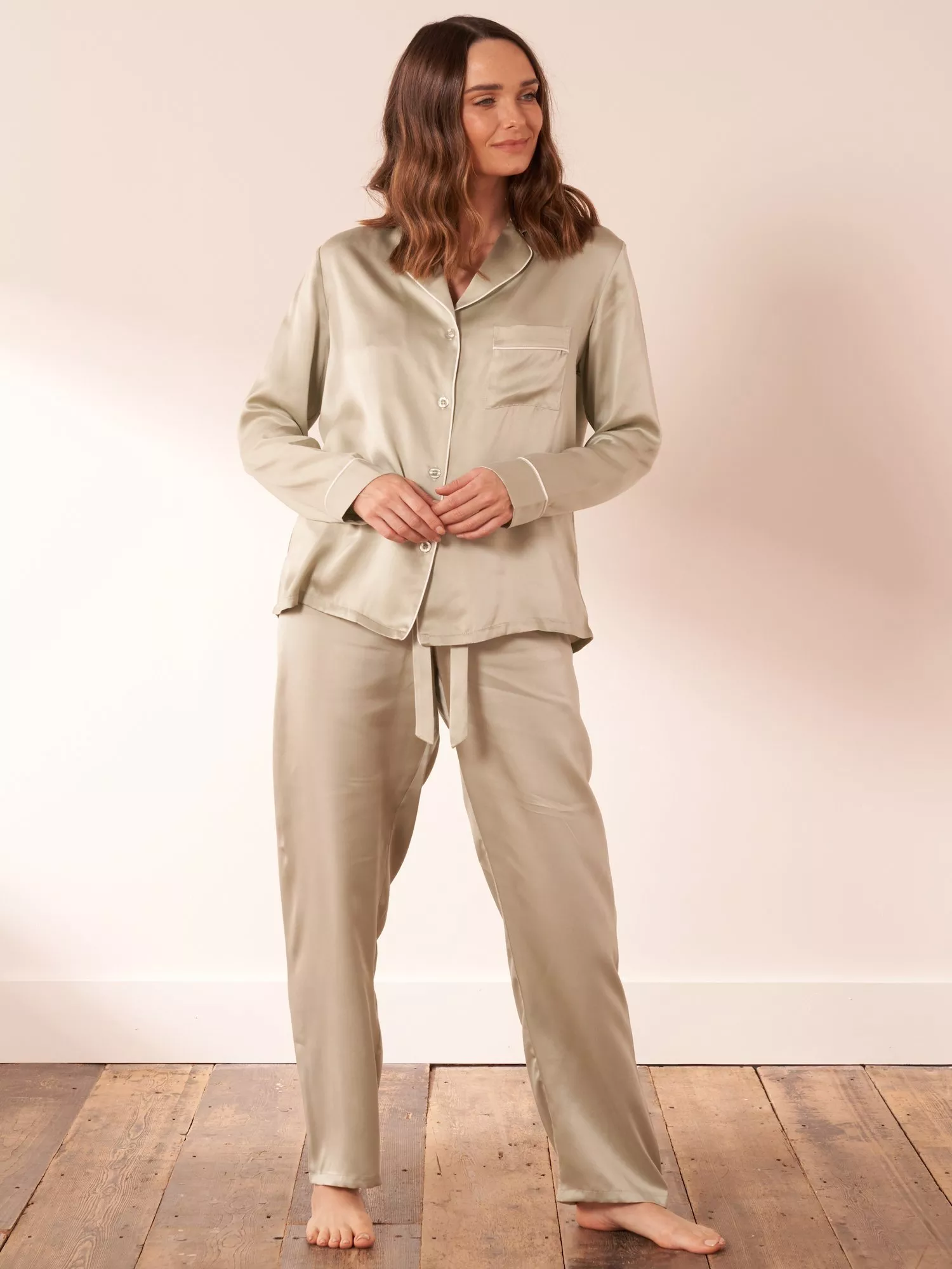 A simple and fuss-free addition to your nightwear collection, this long-sleeve pyjama set by Truly is crafted from airy silk that's comfortable and cooling for undisturbed sleep.