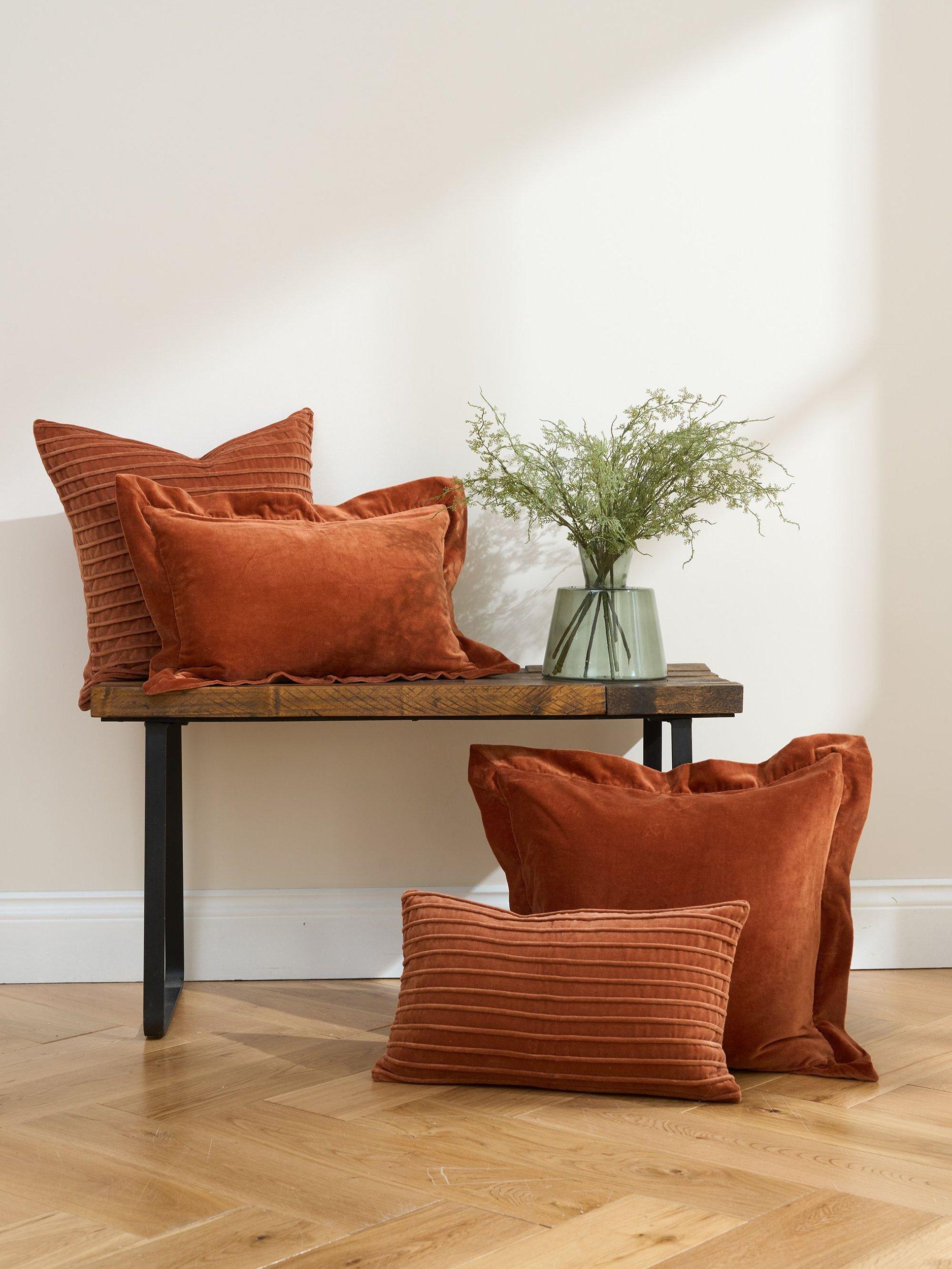 TrulyVelvet Rectangle Stripe Cushion, Burnt Orange