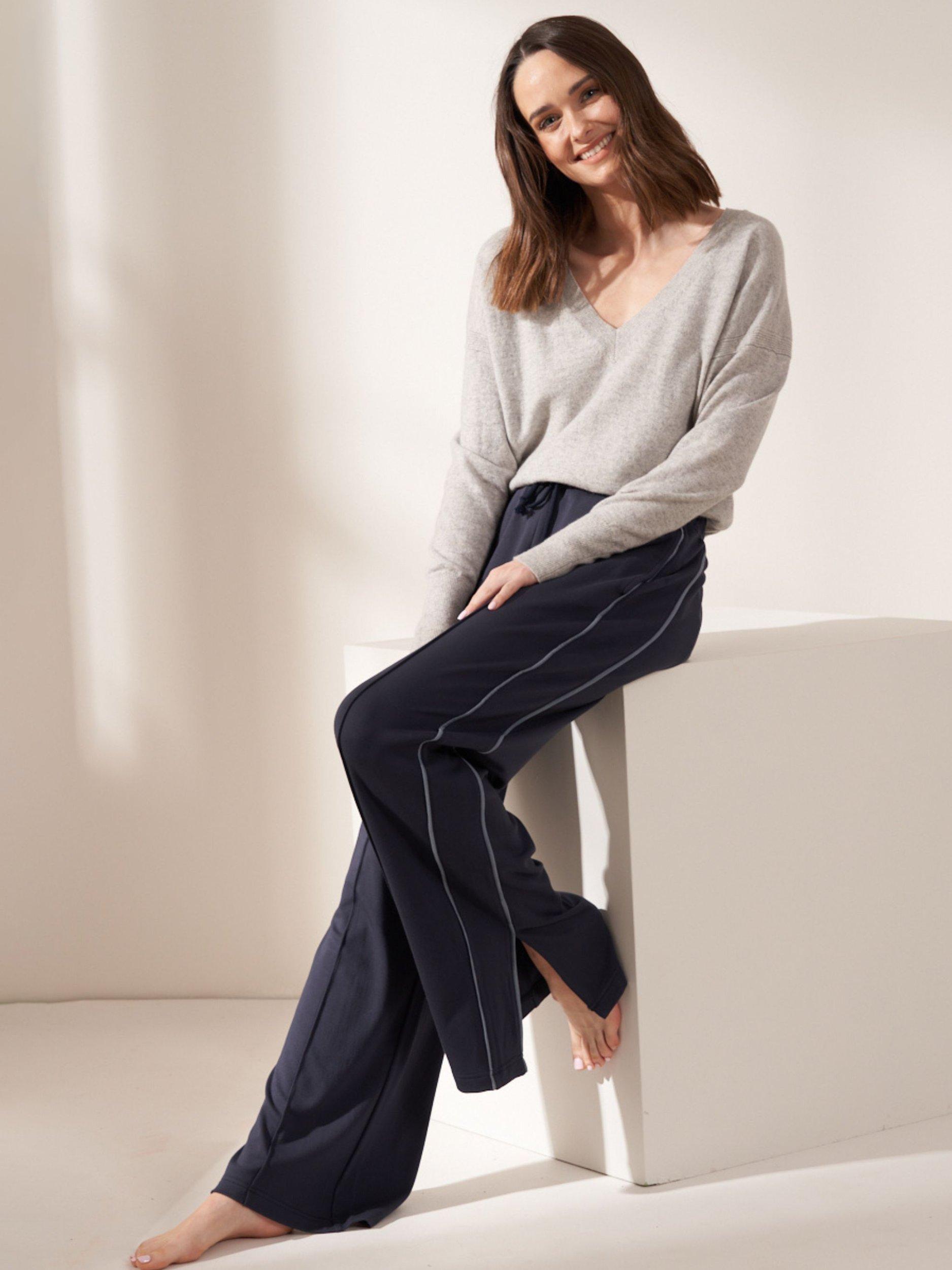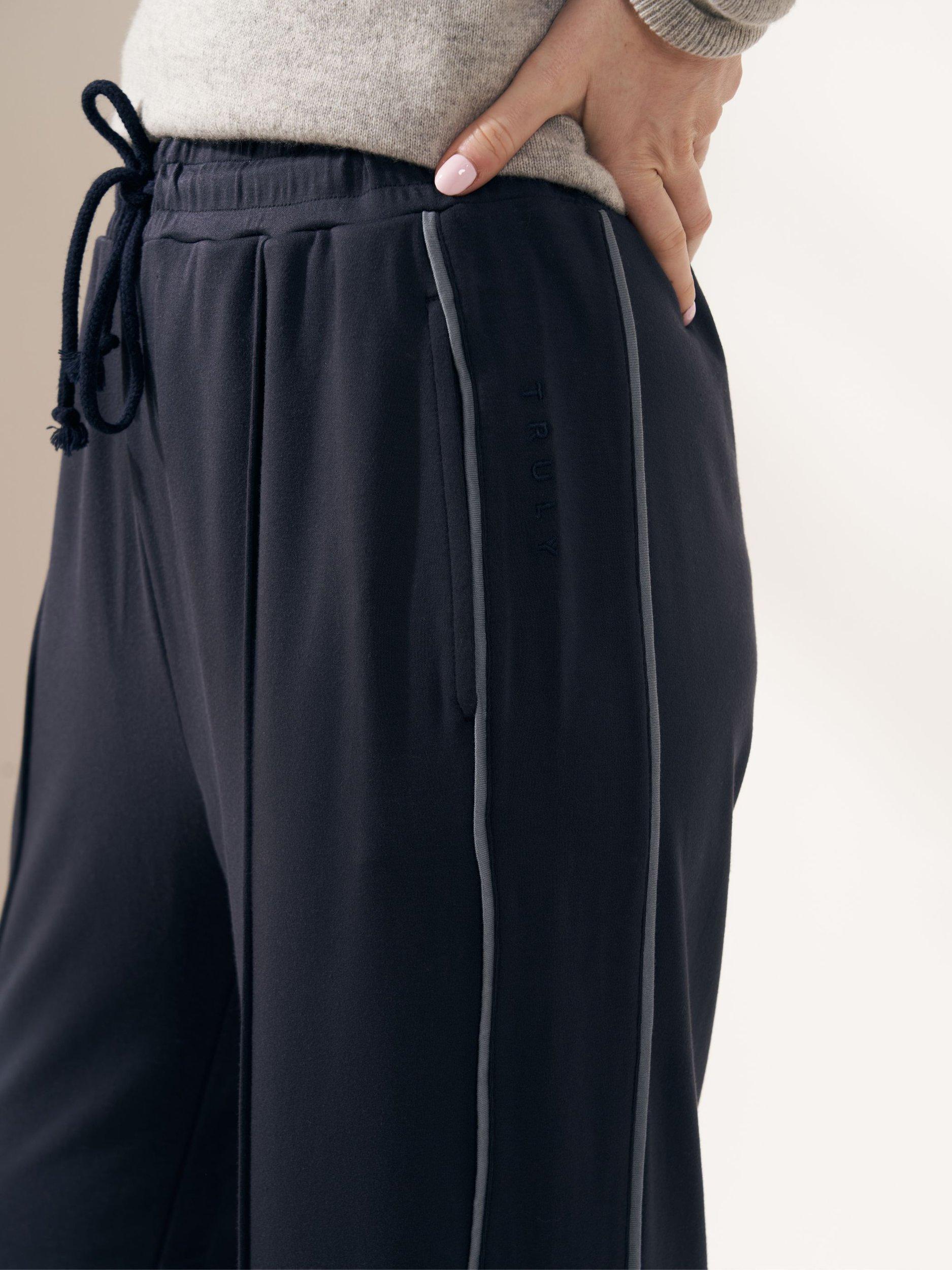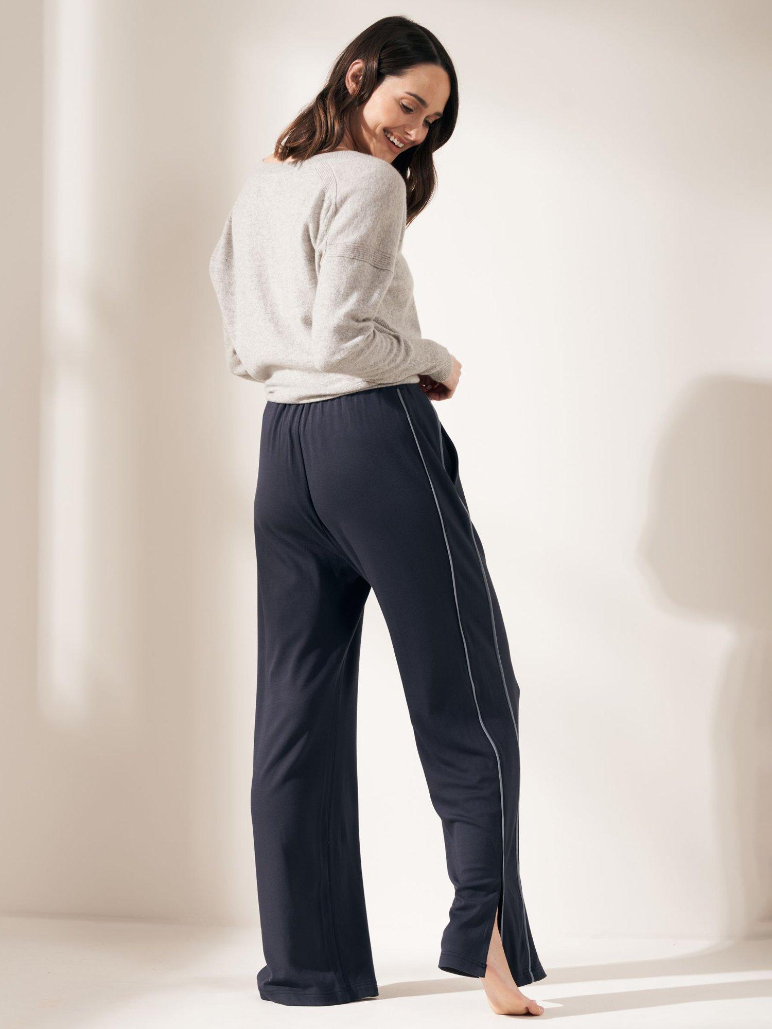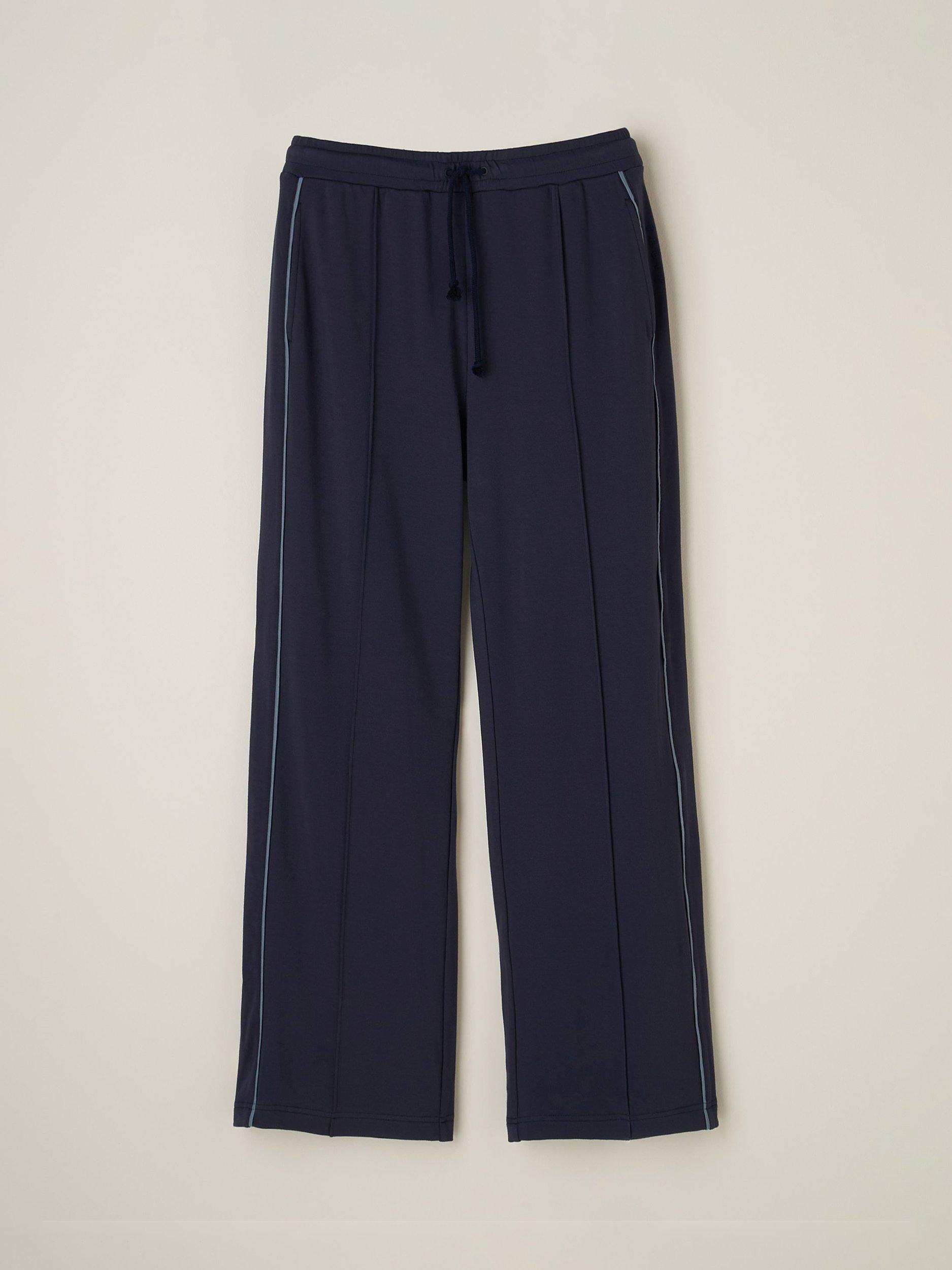 Designed with a relaxed wide leg and flattering pleat detail down the front, they strike the perfect balance between lounge and luxe. The mid-rise elasticated waistband offers all-day ease, while the contrast piping along the leg adds a subtle pop of style.