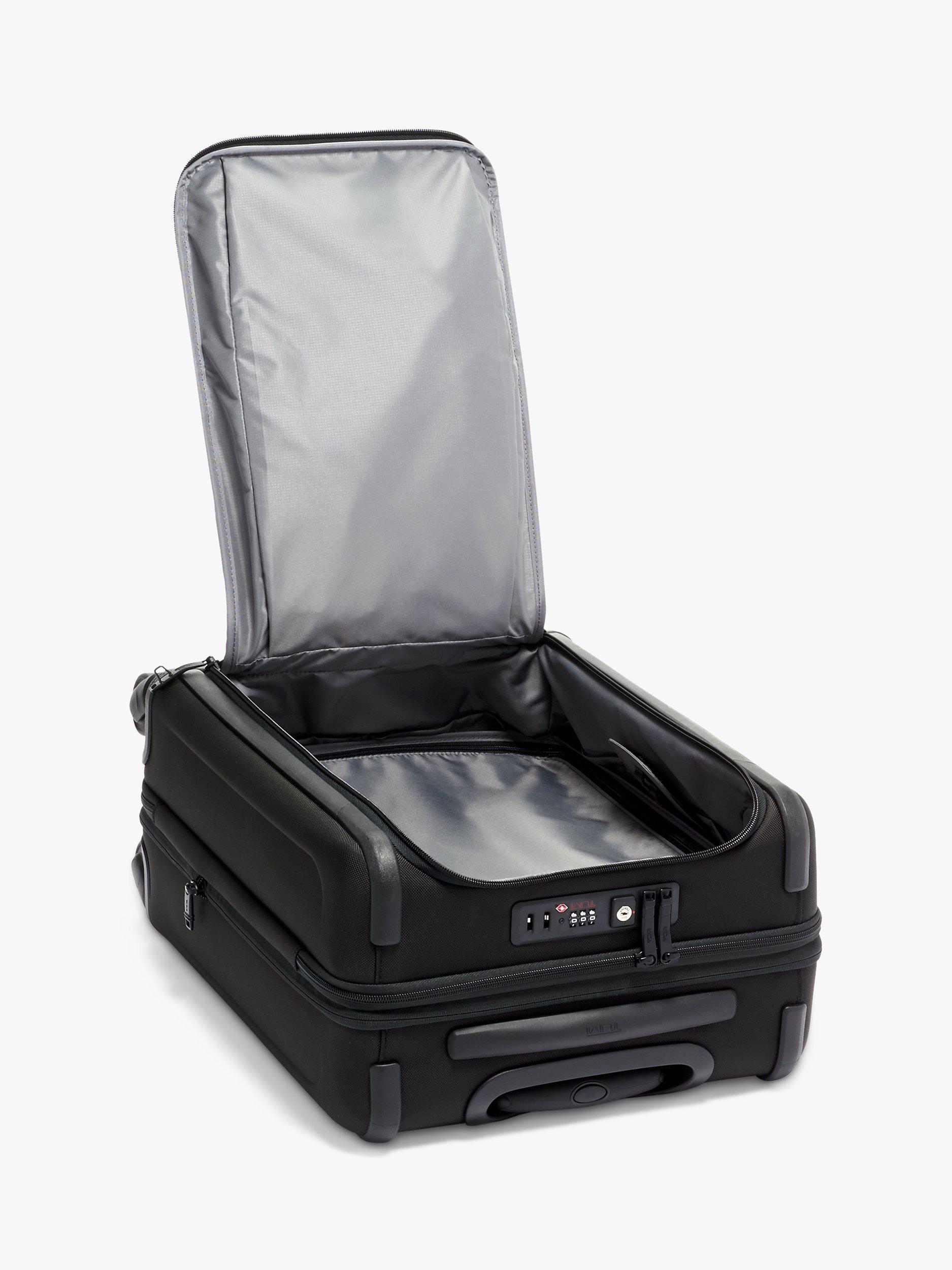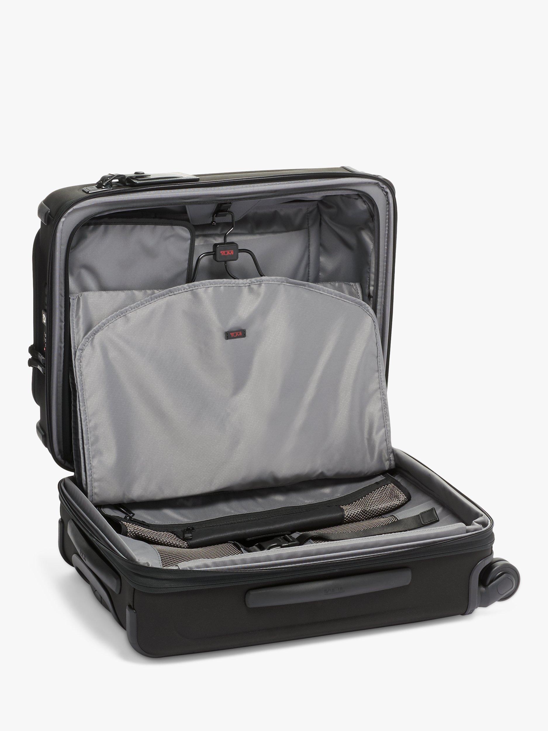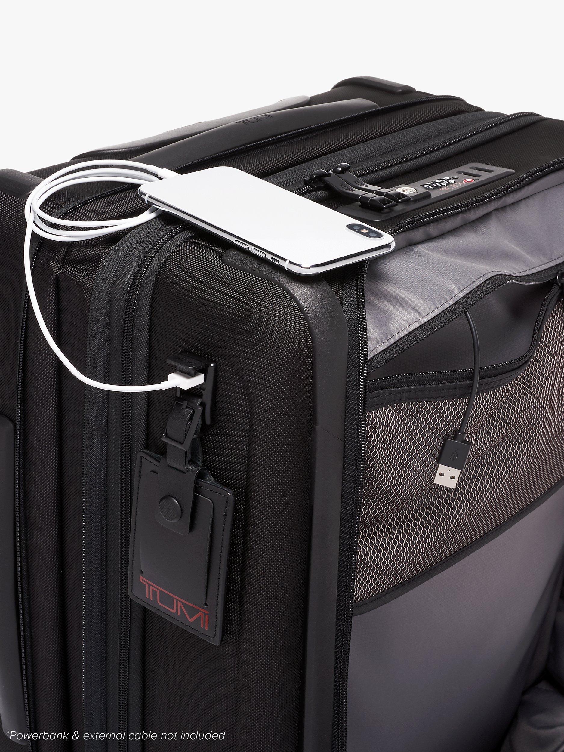 TUMI'S Continental Carry-On offers an innovative dual entry to the main compartment, allowing you quick access to your belongings through the front lid. Designed to meet the carry-on size requirements for travel within North America, it includes a built-in USB port to keep you connected on the go, as well as a separate garment sleeve to keep one suit in shape.