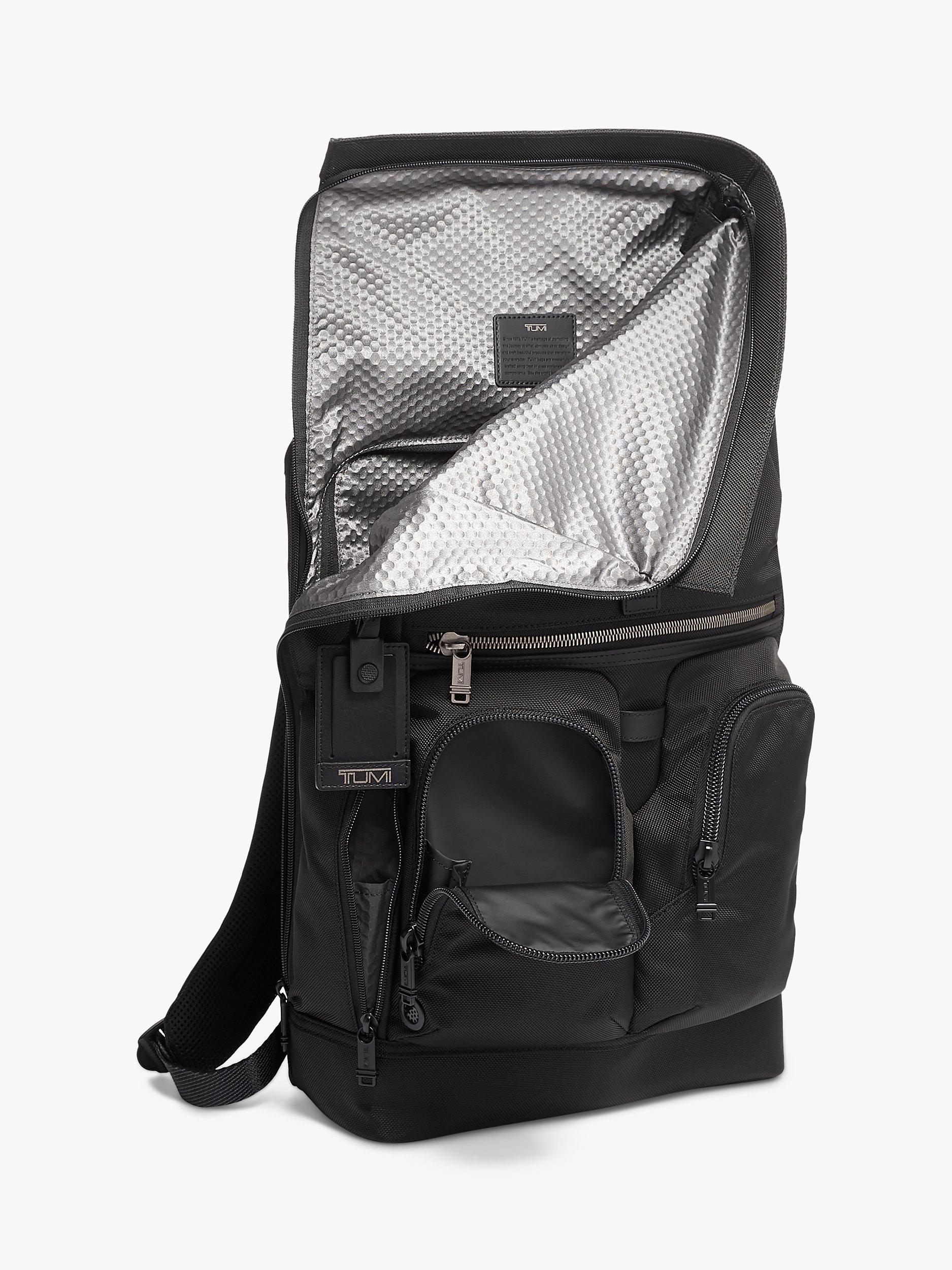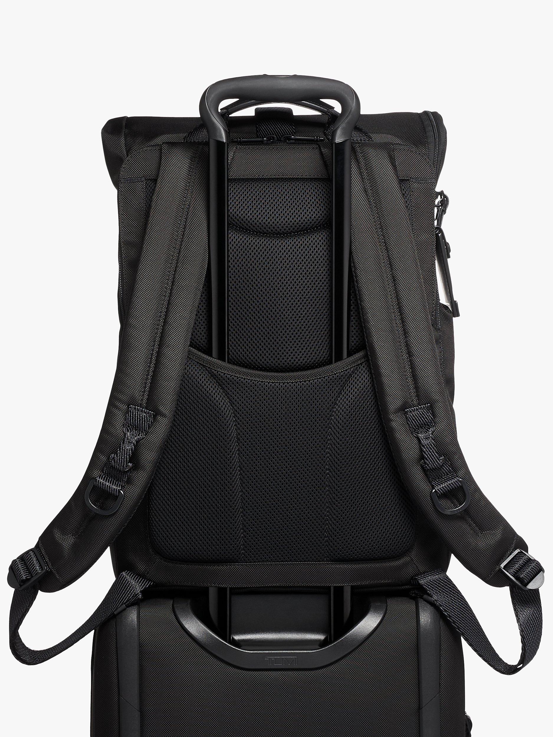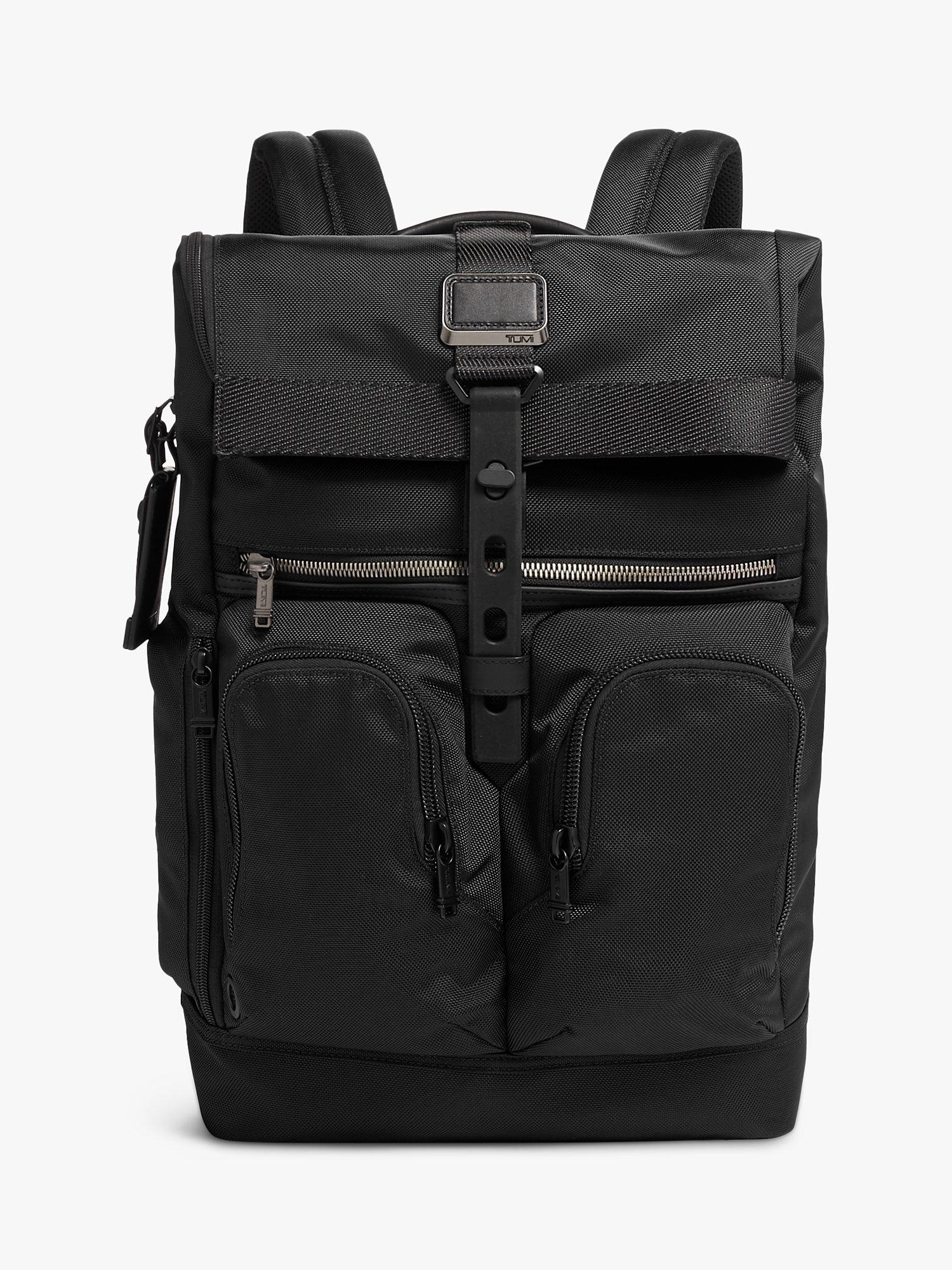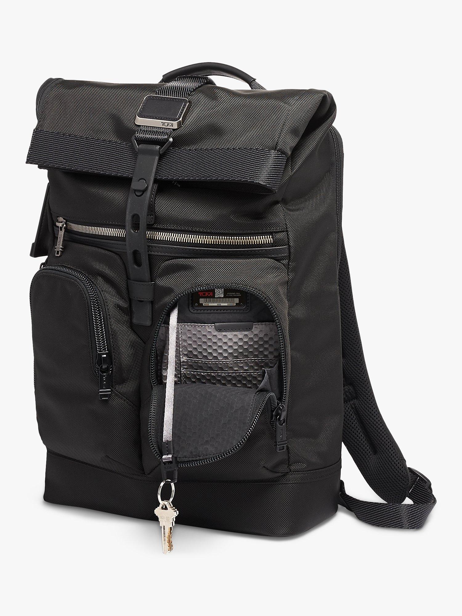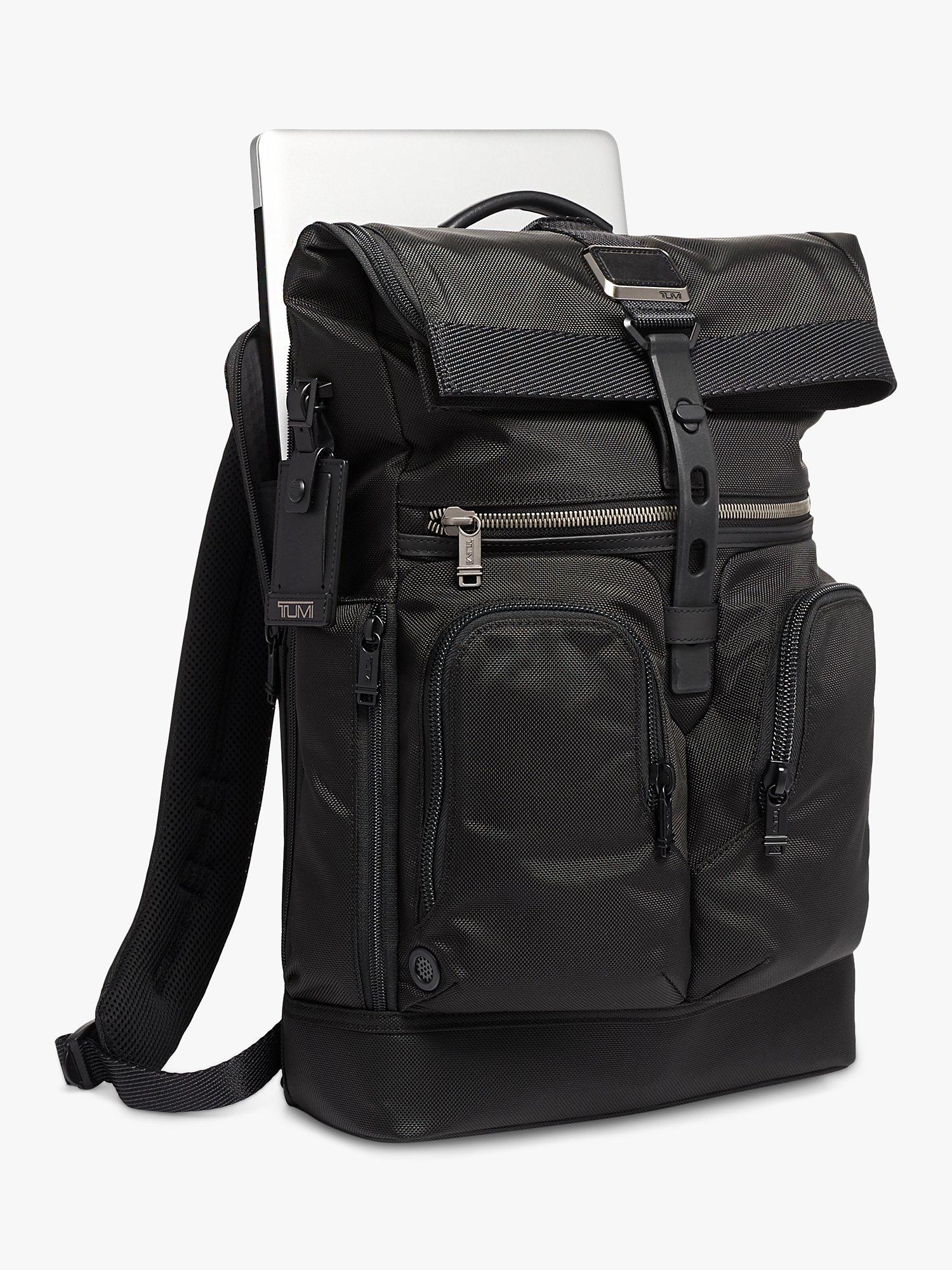 Built to perform, TUMI's Lance backpack features a roll top with a strap that adjusts to accommodate your haul. The L-zip opening makes for simple packing, while pockets for your laptop, tablet, phone, and water bottle keep your essentials in place and easy to access.
