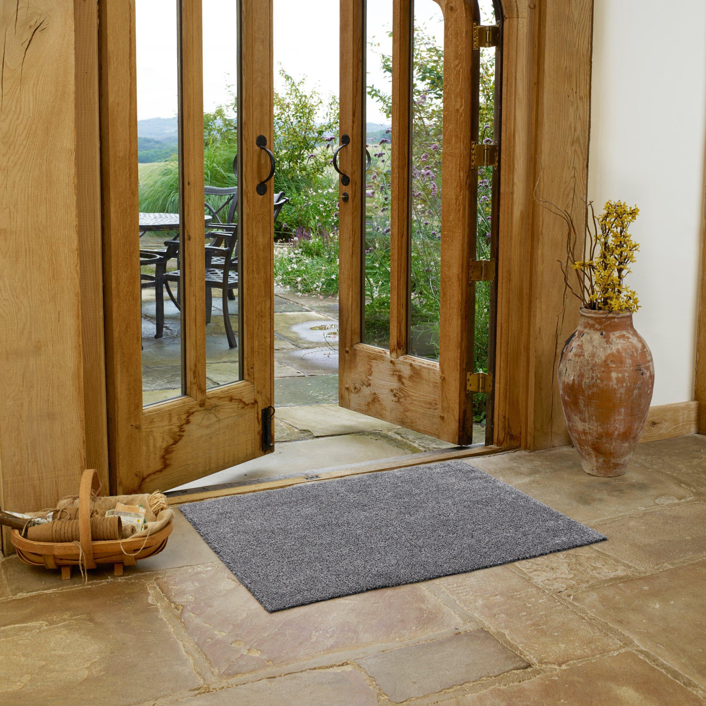 Dirt-trapping, absorbent doormat with a lightly studded anti-slip backing to cut down creep on carpets. Suitable for use across all floor surfaces including vinyl. For indoor use and designed to help keep floors cleaner for longer. Made in the UK. Machine washable.