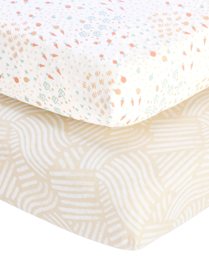 Soft and snug, Tutti Bambini's two-pack Mini Cot Bed Fitted Sheets are made from breathable bamboo jersey with a gentle stretch for the perfect fit and double seams for durability. Easy to pop on, easy to wash, and lovely to lie on.