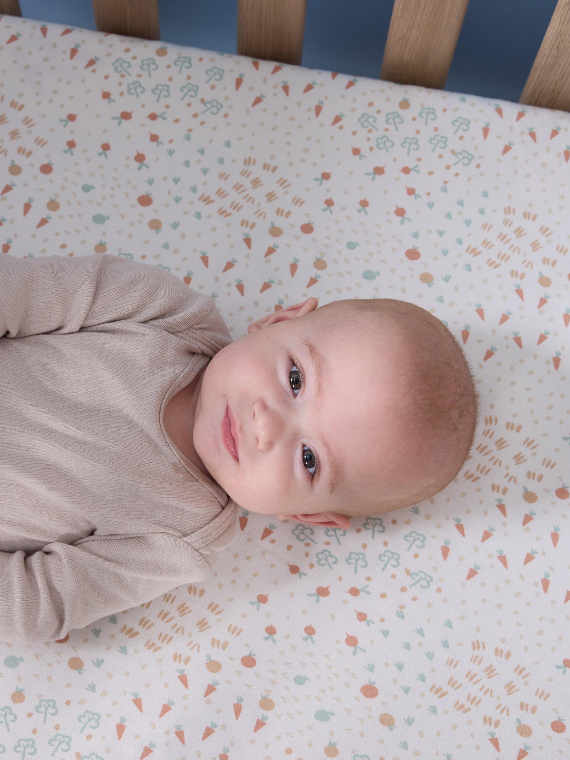 This cot bedding set includes 2x fitted sheets and a waterproof mattress protector. Suitable for cot mattresses 120 x 60cm.