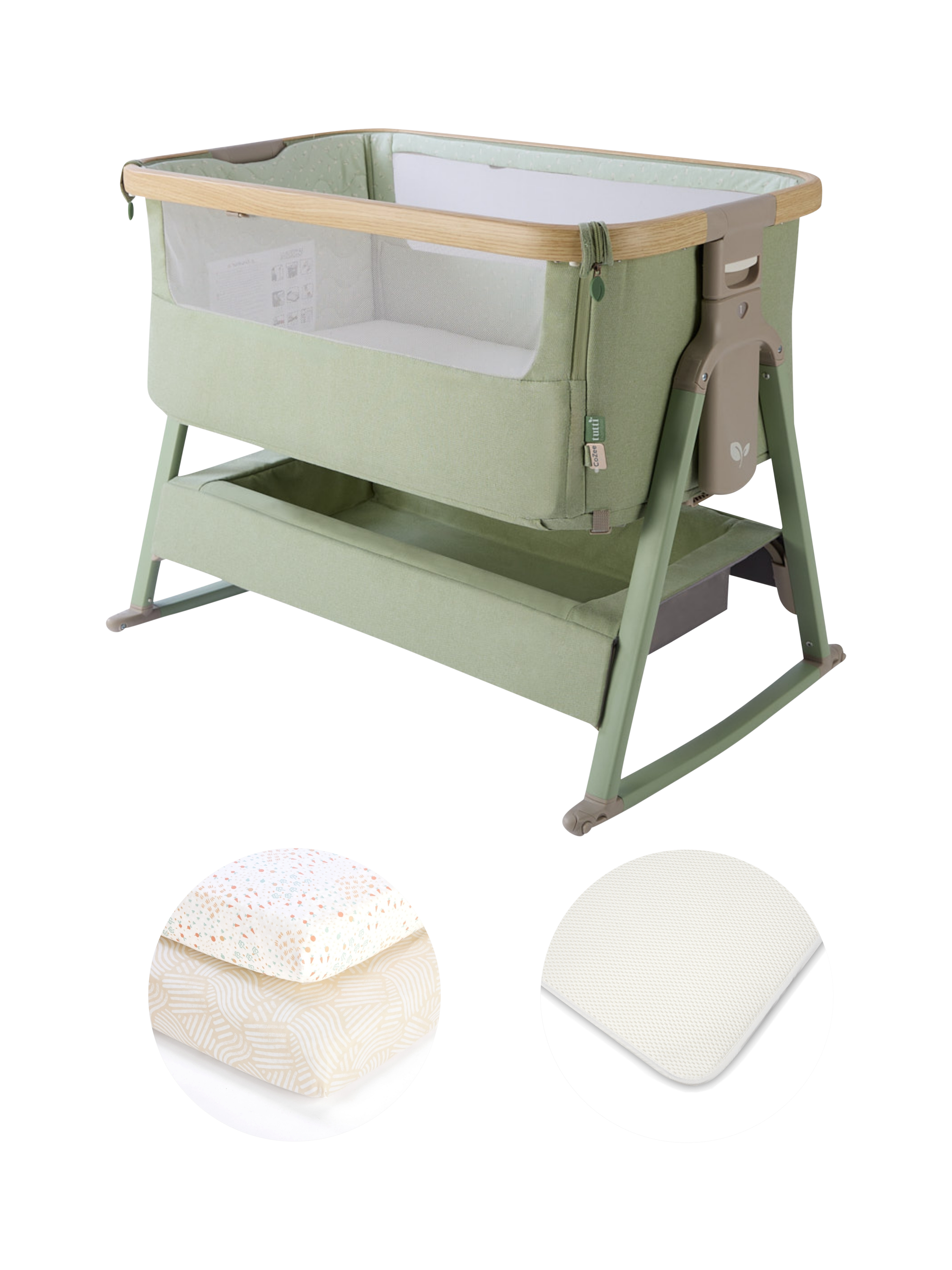 Tutti BambiniCoZee Air 2 Bedside Crib Starter Bundle, Eucalyptus