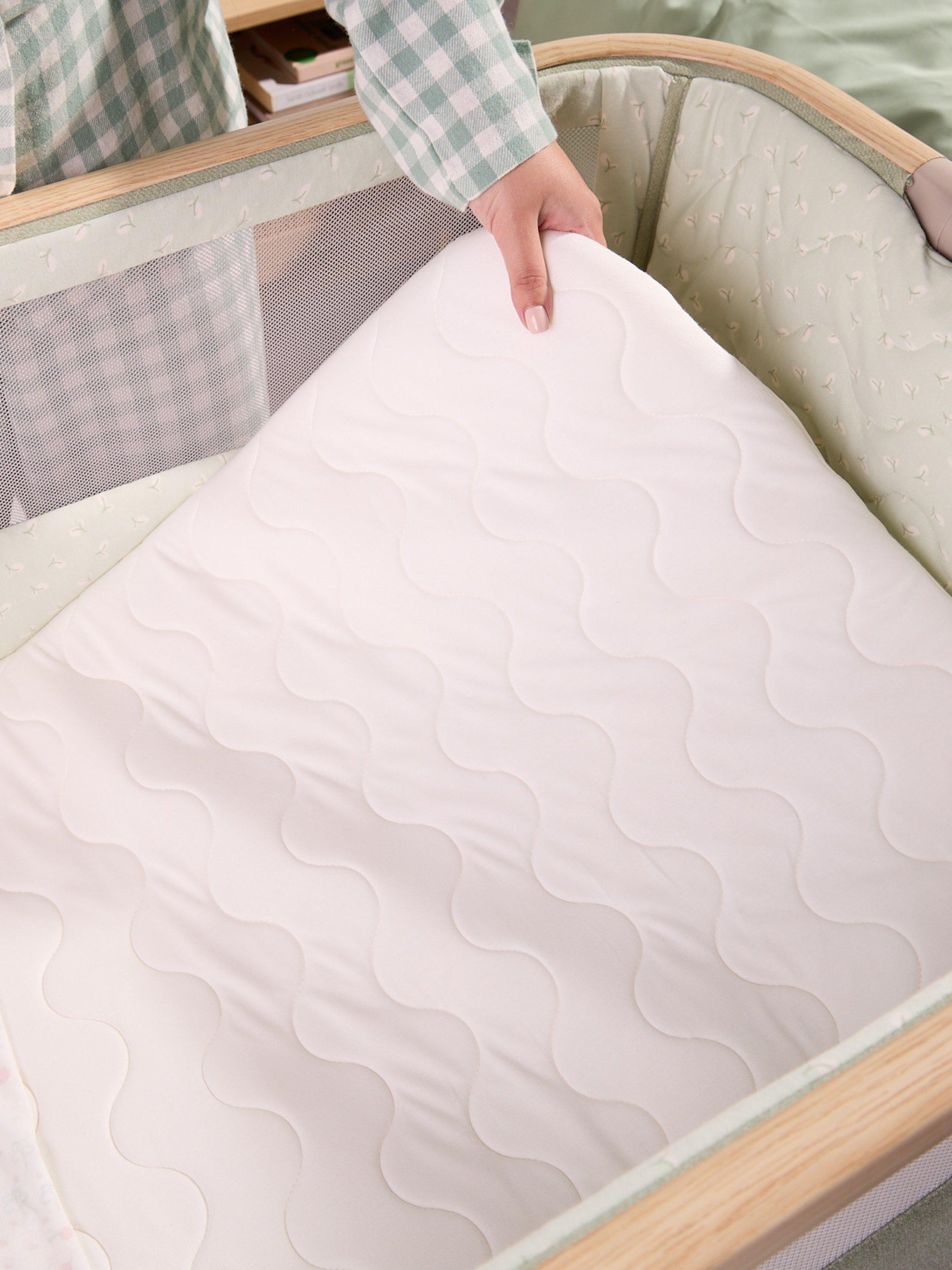 The CoZee Air2 Bedside Crib combines tailored design with thoughtful functionality, creating a calm and comfortable sleep space from day one. Its refined finish, quilted lining and mattress cover bring a sense of luxury, while hidden ventilation holes in the side barrier maintain breathability throughout the night.