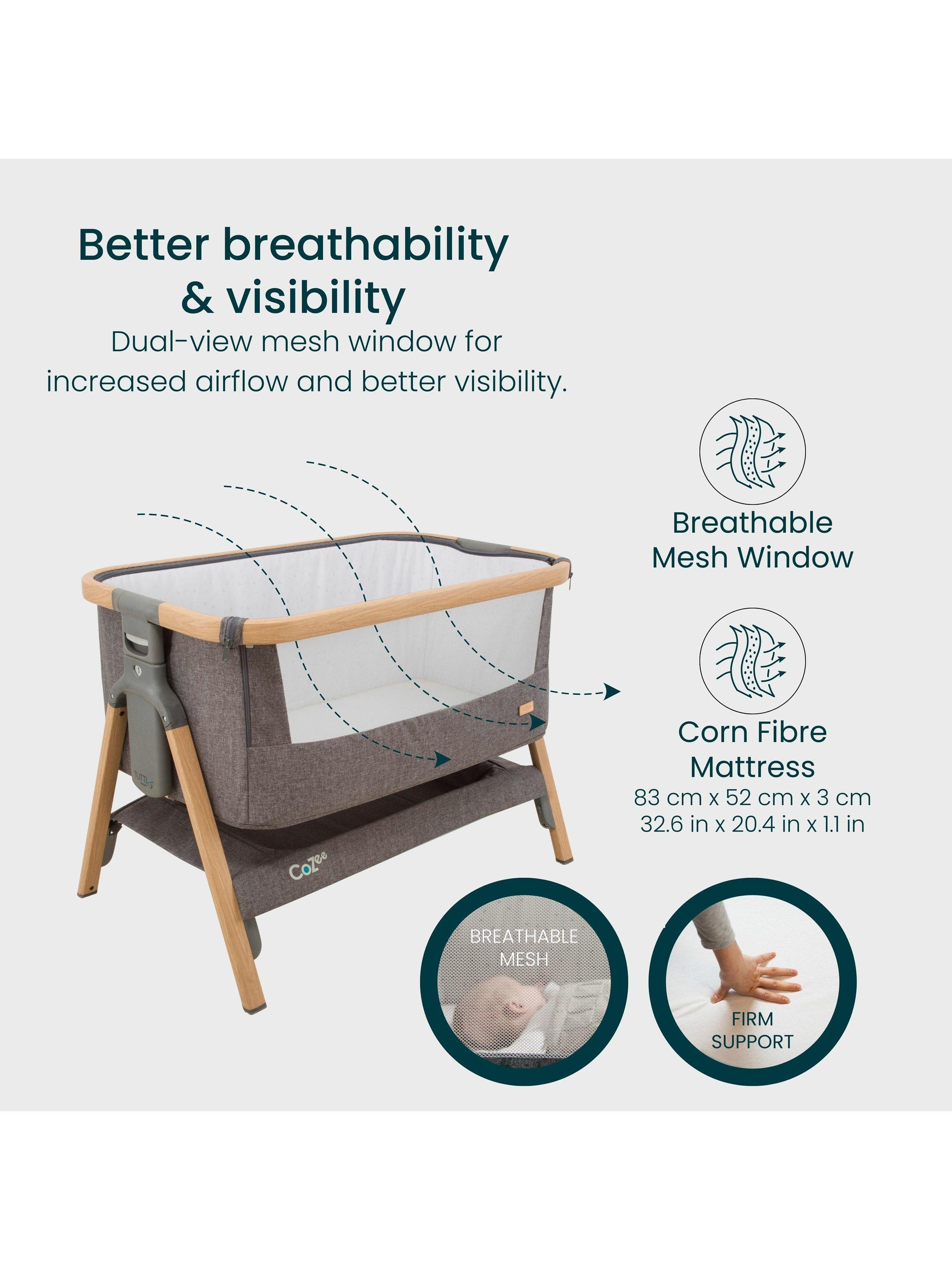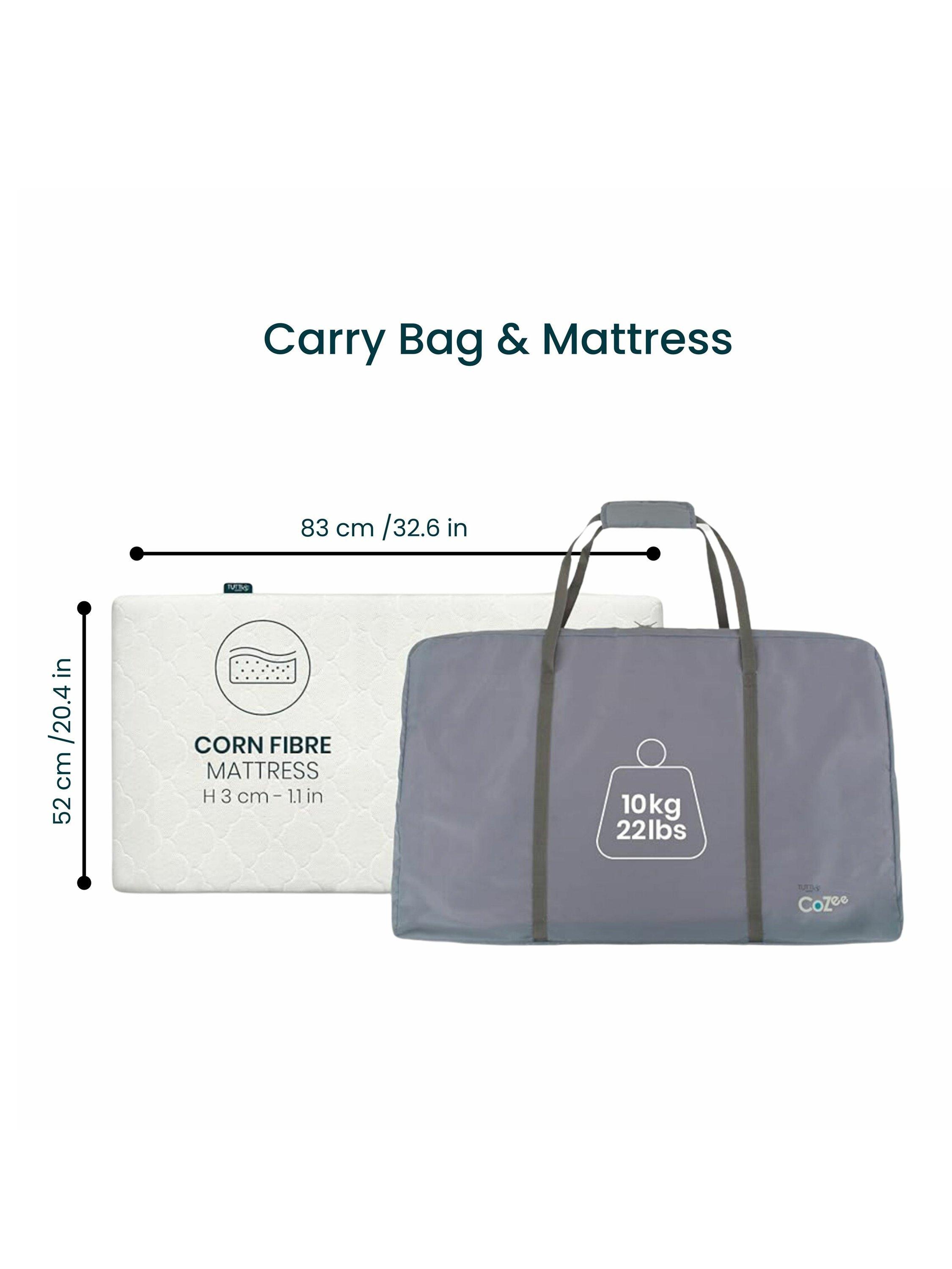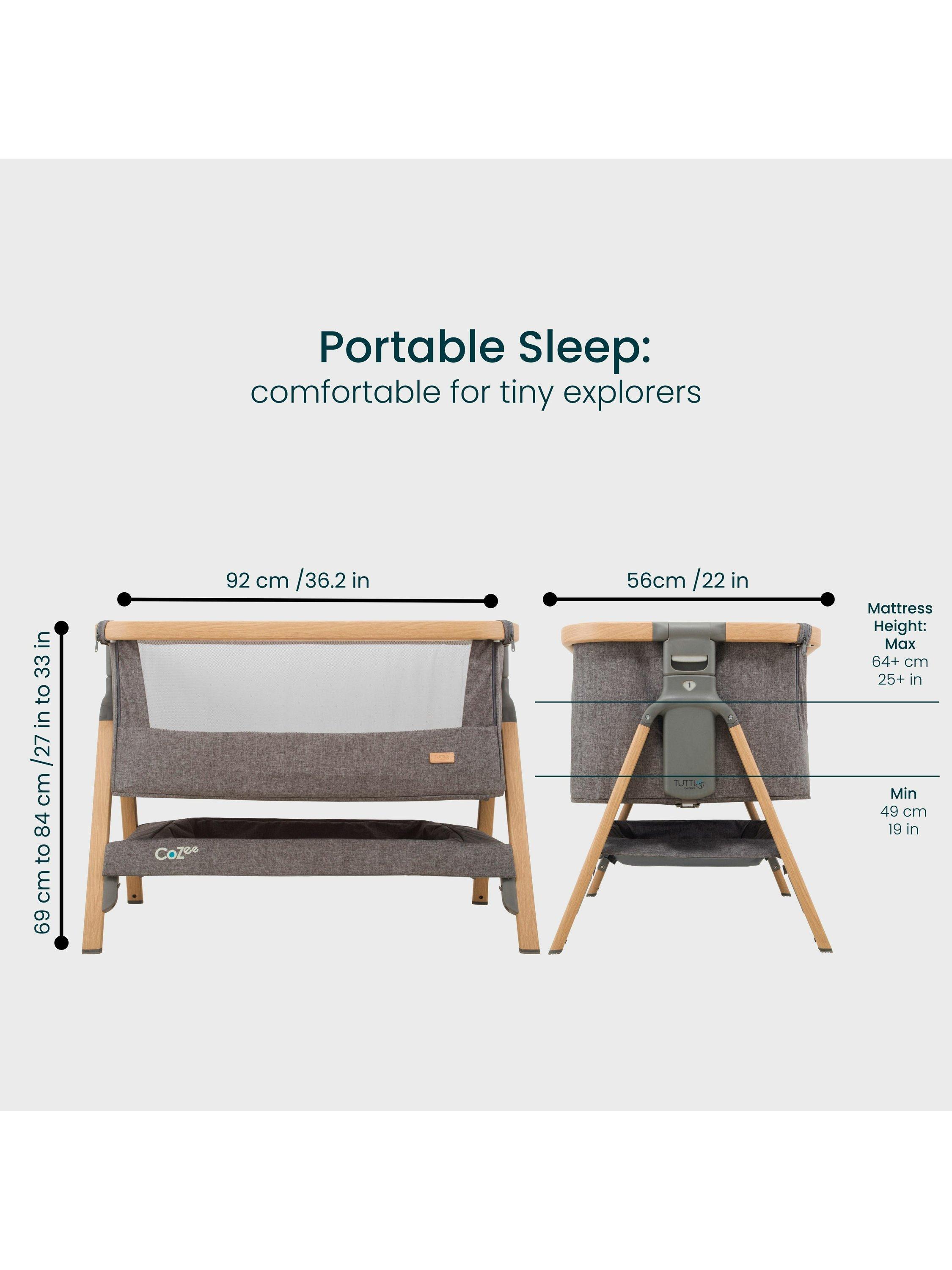 All the benefits of the Tutti Bambini CoZee bedside crib but in one essential starter bundle. This set includes the CoZee bedside crib, mattress, travel bag, breathable mattress protector and two fitted sheets.
