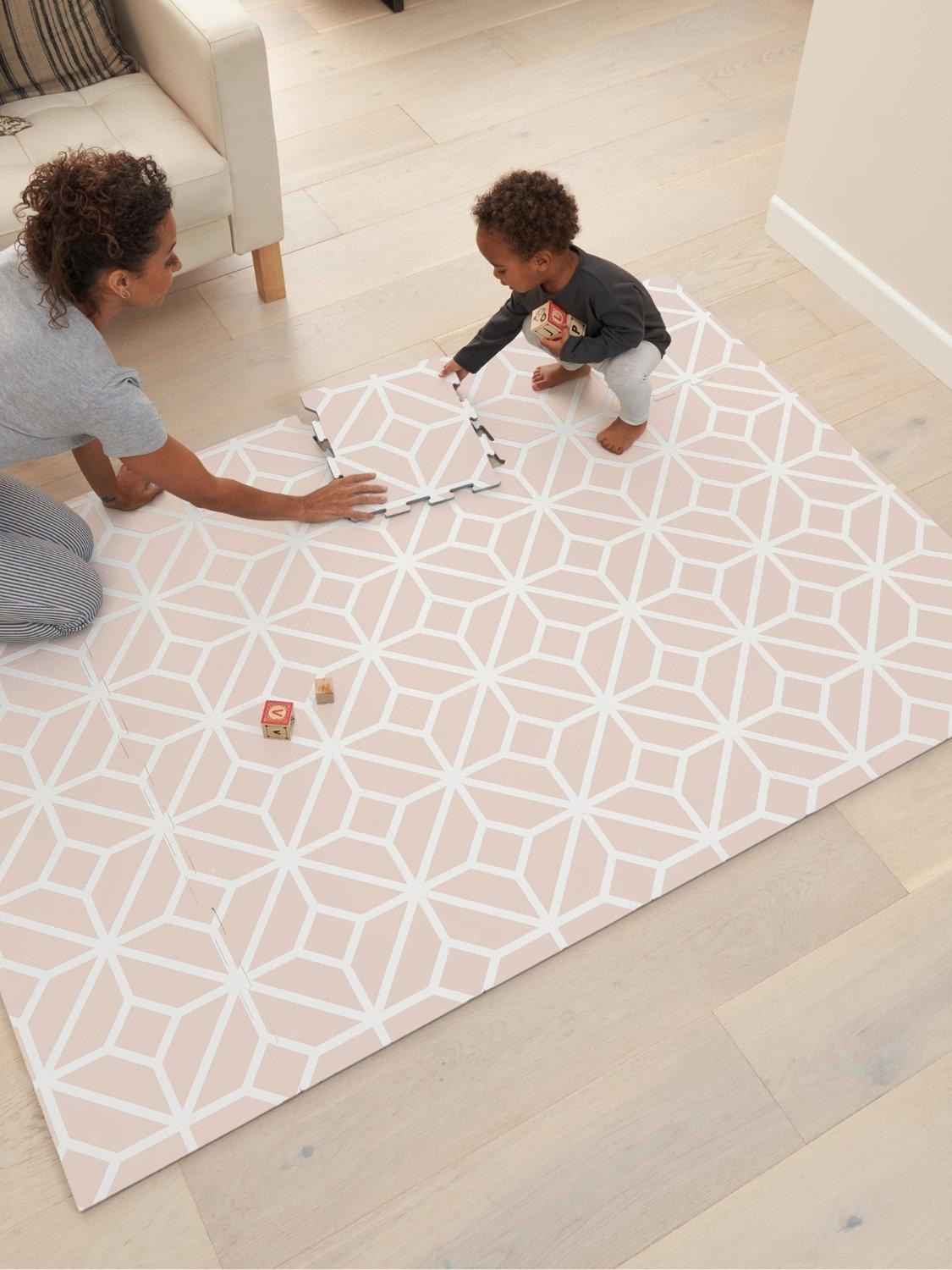 Featuring a stylish tile print, it adds a modern touch to any home while providing a safe and nontoxic EVA foam playground for newborns and beyond. Each pack comprises 24 pieces that quickly and easily slot together to form a comfortable play space for children of all ages. When done, it can be packed away in the handy storage bag.
