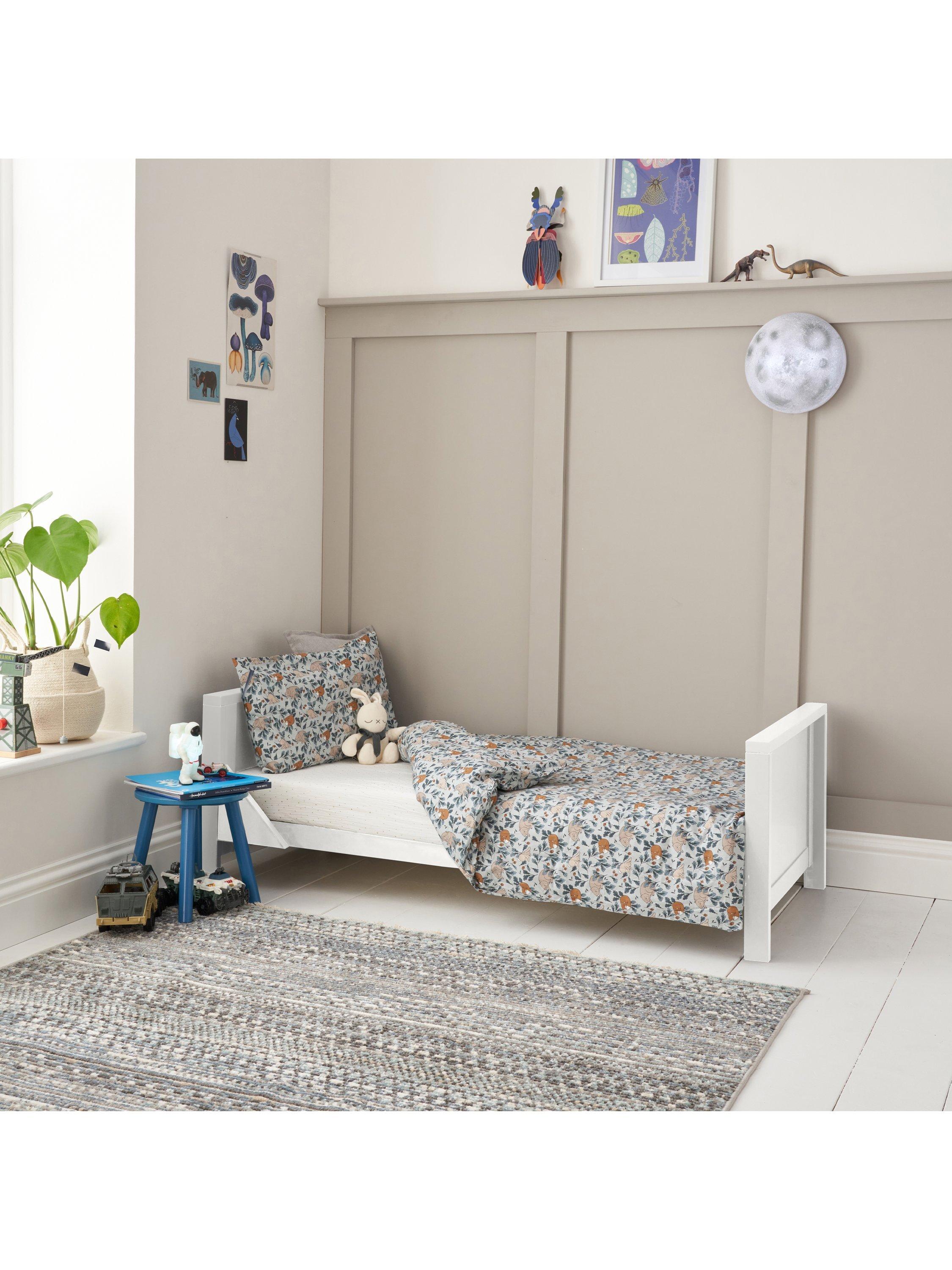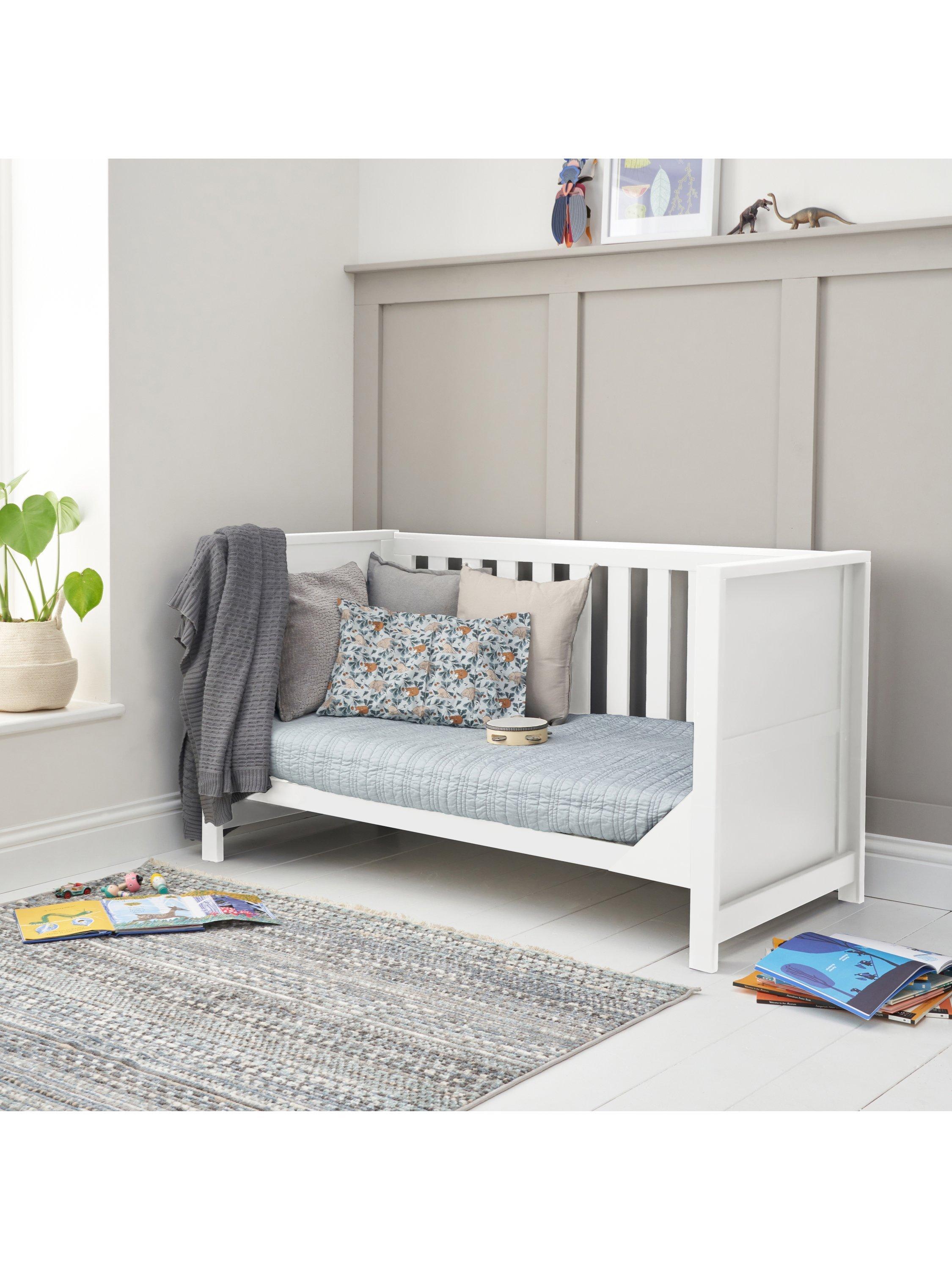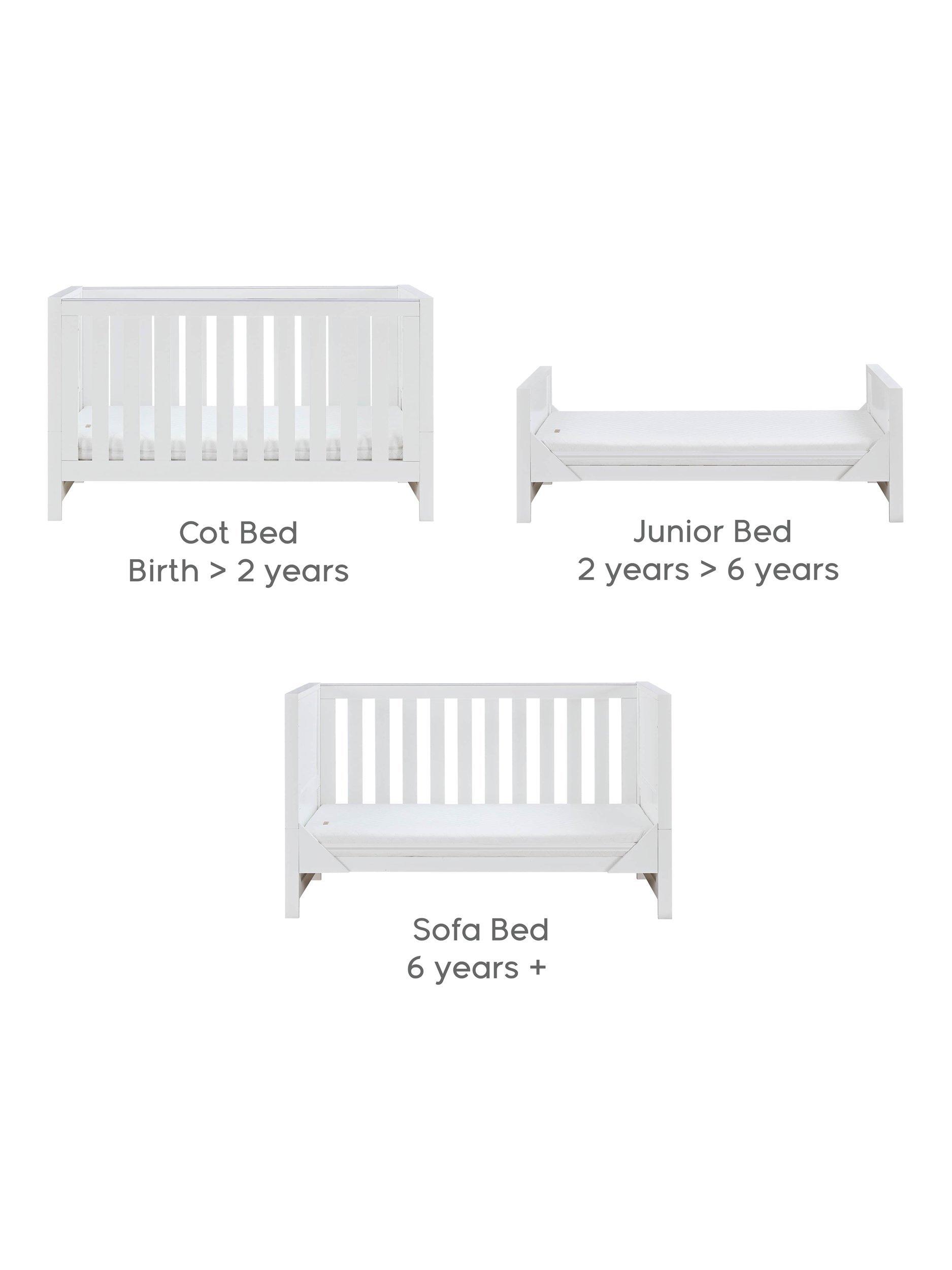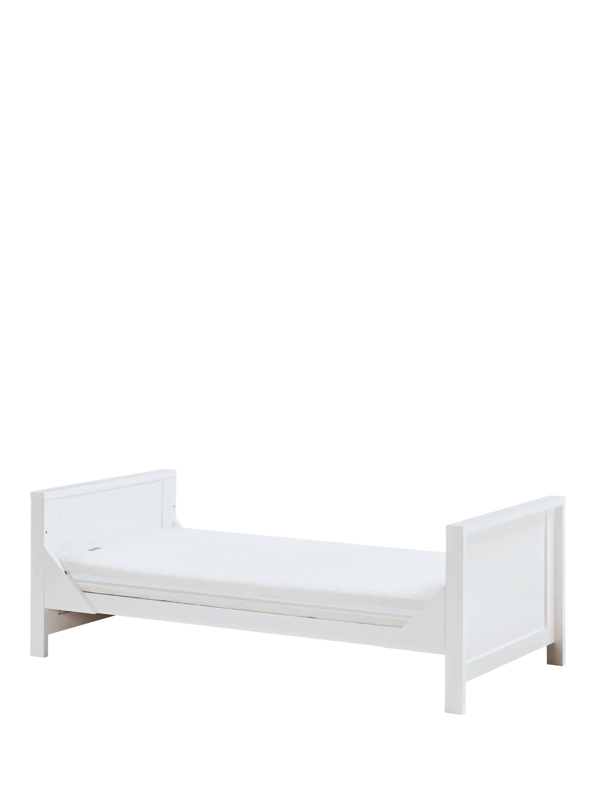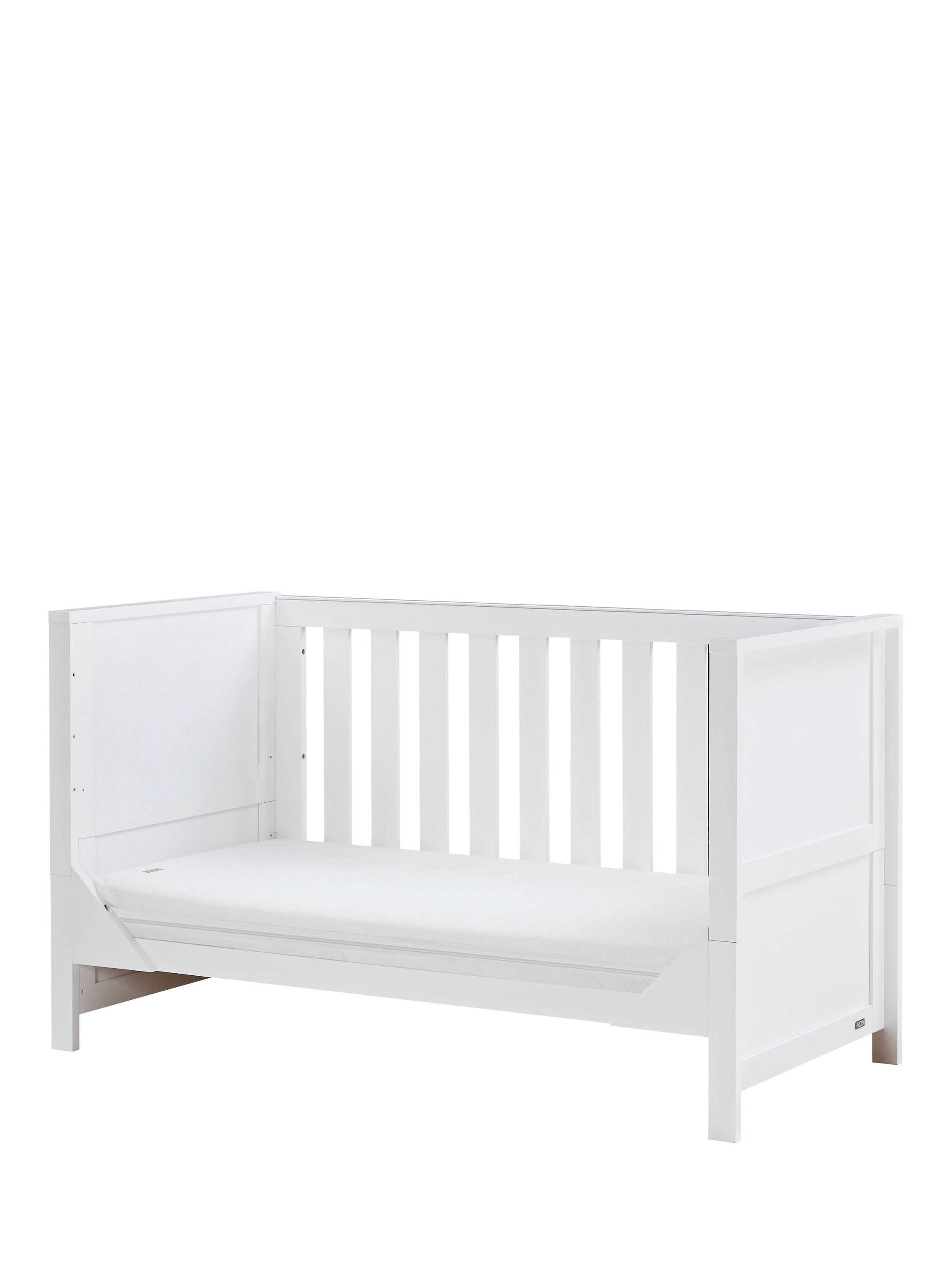 Combining a chic silhouette with functional features, the Tutti Bambini Tivoli Cot Bed offers a snug and inviting sleep environment for your child. Its versatile design includes three adjustable mattress height positions and it seamlessly transforms into a toddler bed or sofa bed, providing adaptability as your child grows. Matching furniture is available to complete the look.