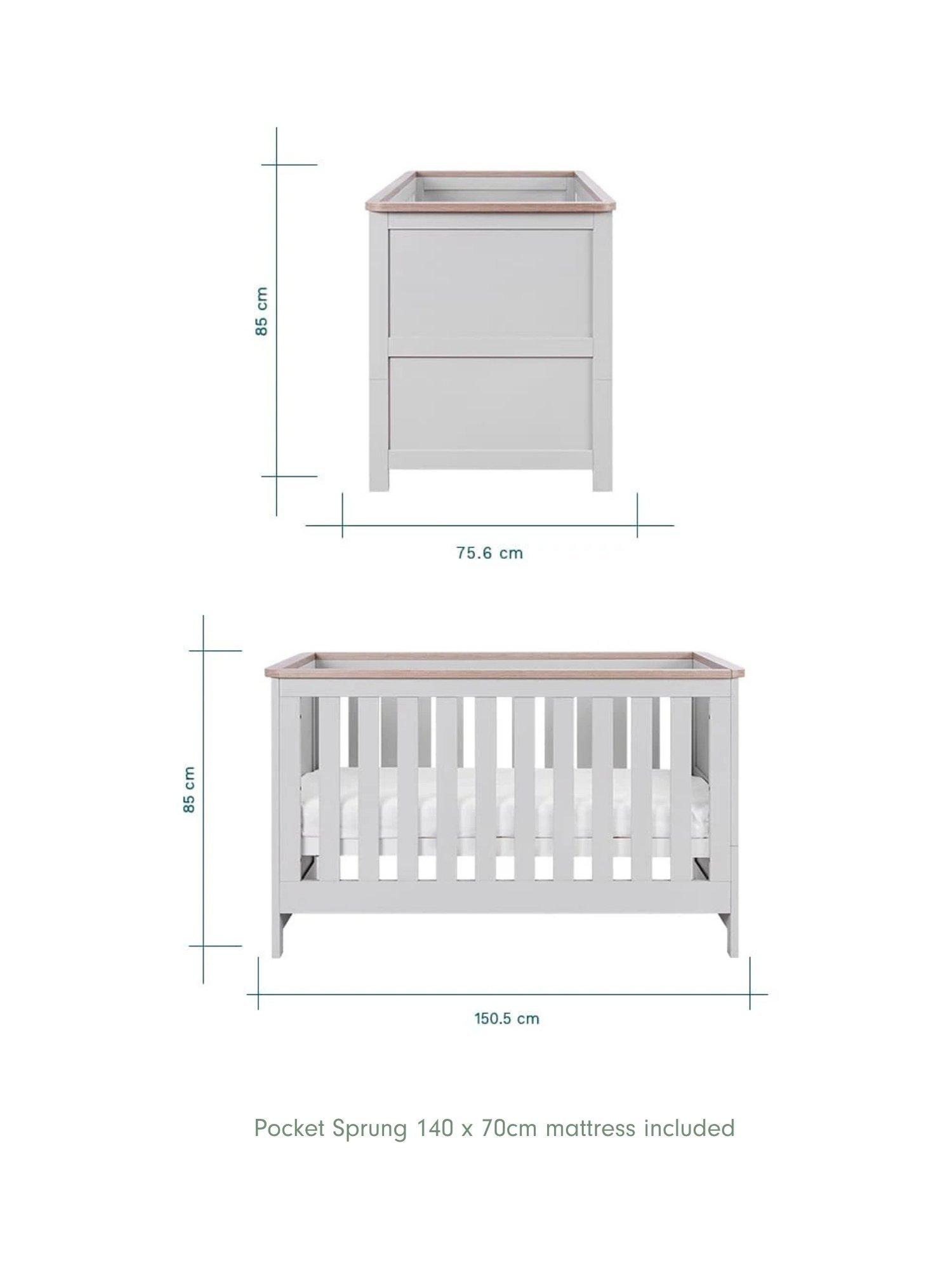 Included with the cot bed is the Tutti Bambini Pocket Sprung Mattress (140 x 70cm) designed to give exceptional comfort and support with individual pocket springs and high-density foam walls for durability. Its softly quilted, breathable cover, ensures a cosy sleep environment. The fully removable cover is washable at 60°C and features anti-bacterial, anti-fungal, and anti-dust mite properties.