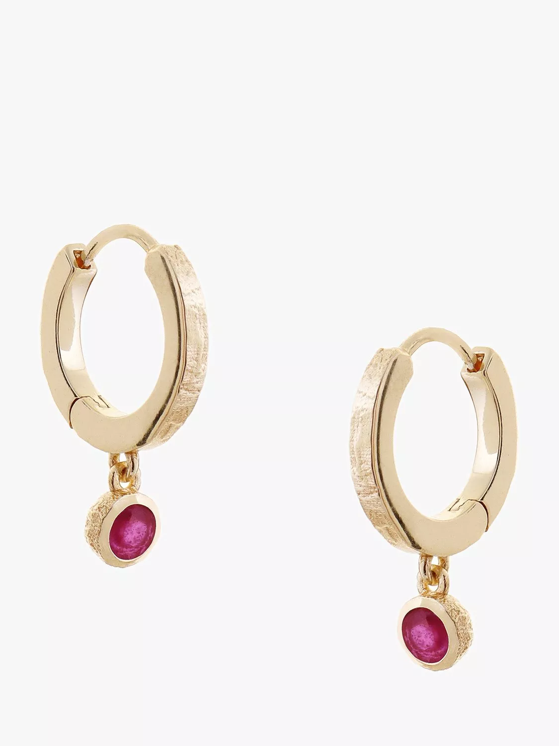 Huggie hoop earrings with small semi-precious stone drops, representing each month of the year. Choose the birthstone personal to your or your loved one, or simply the stone you like best!