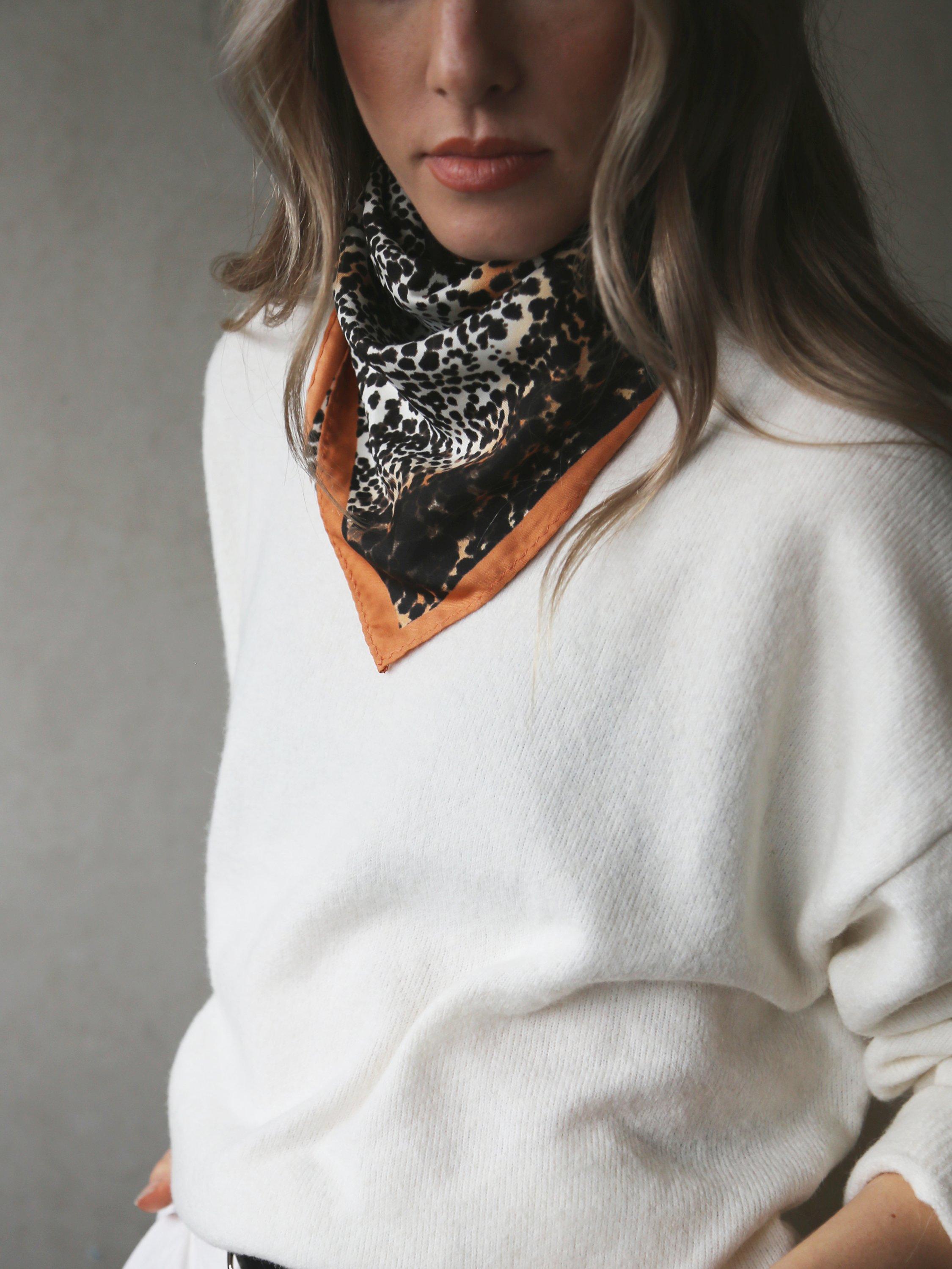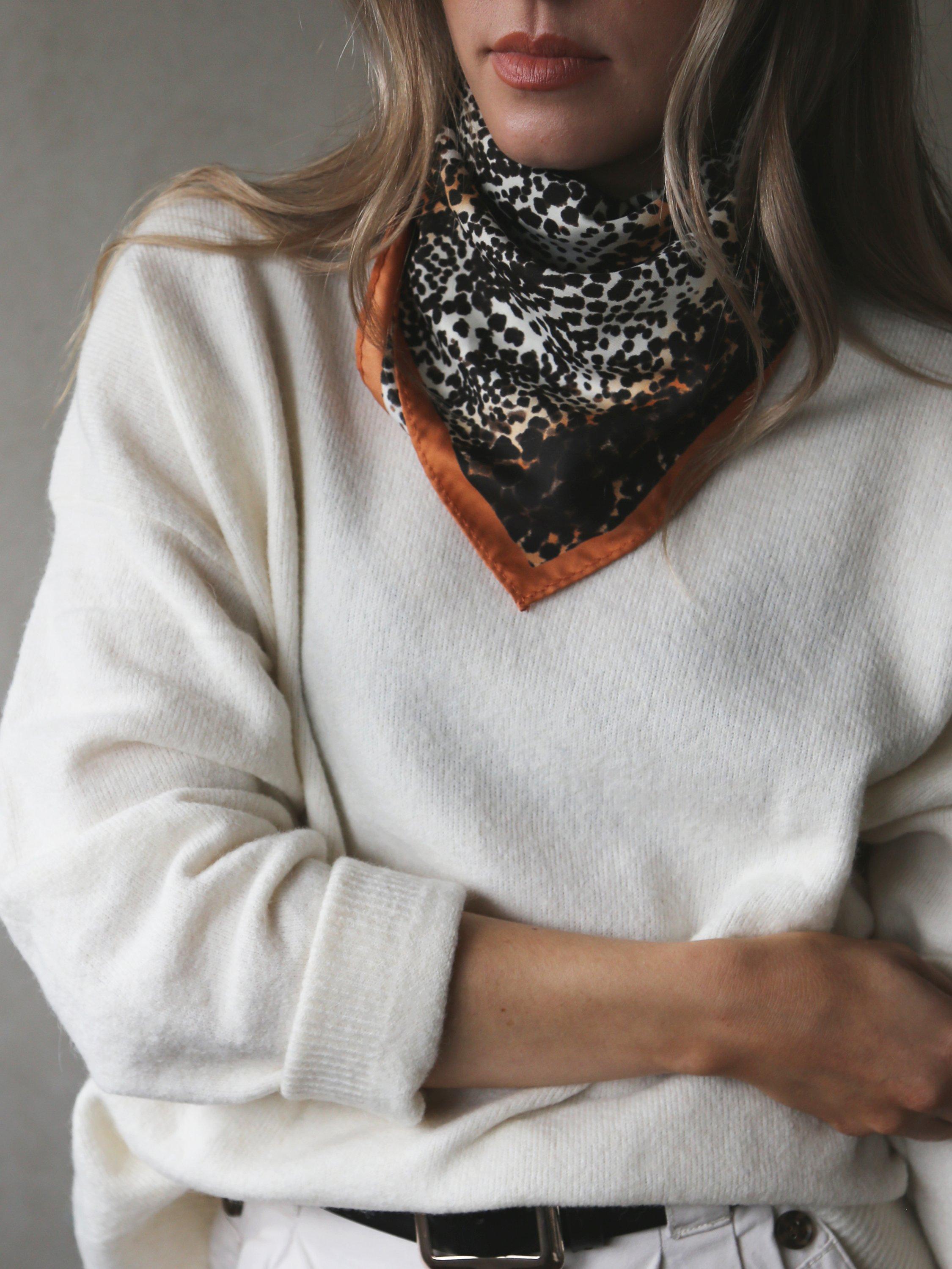 A new take on the classic leopard print, this Ditsy Leopard square scarf from Tutti & Co features a small-scaled ditsy animal print in lovely neutral tones.