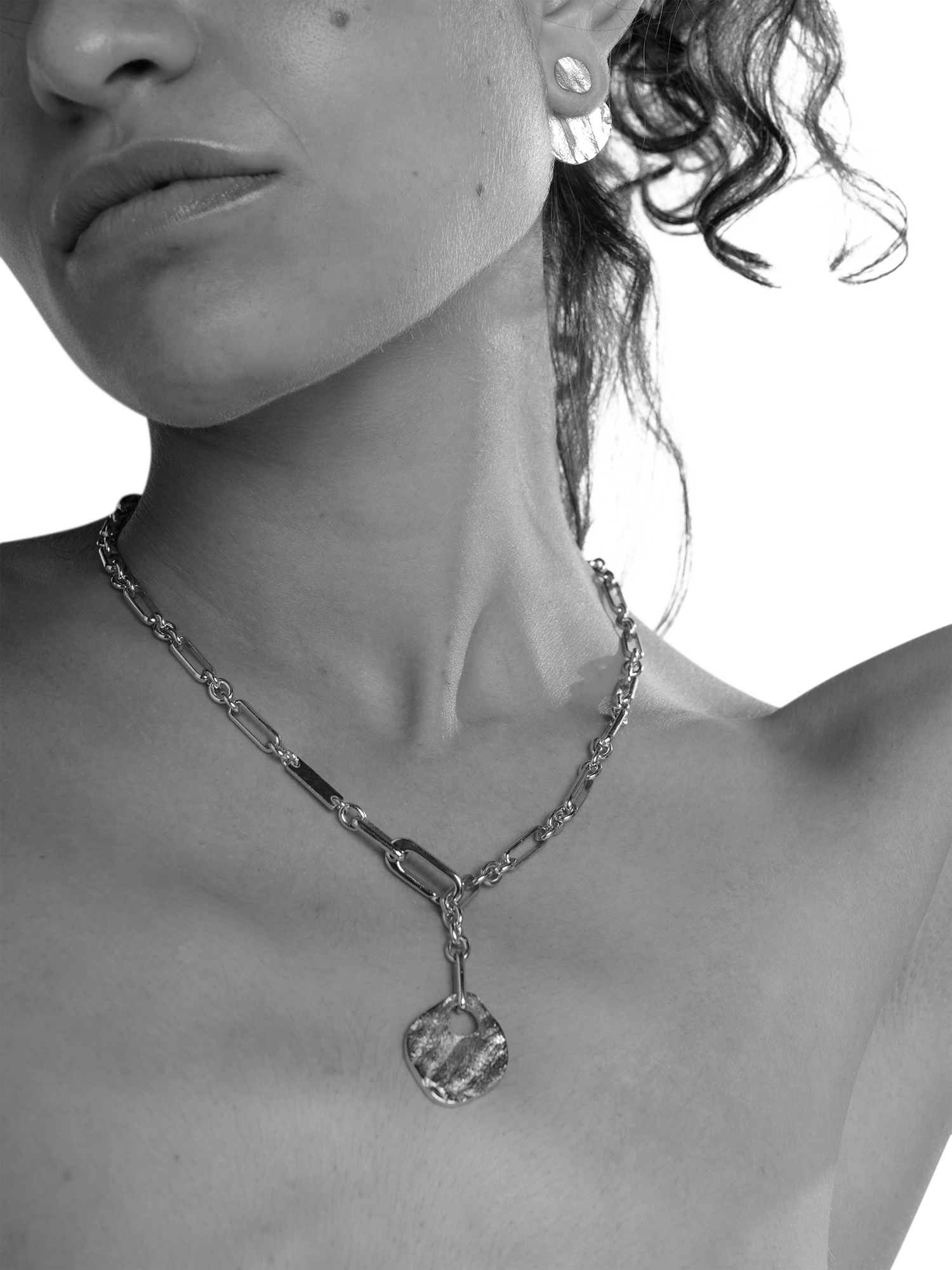Disc pendant chain necklace. Fasten the oval clasp anywhere along the chain to wear at your desired length. Full length: 70cm. Pendant: 2.5cm x 2.1cm.