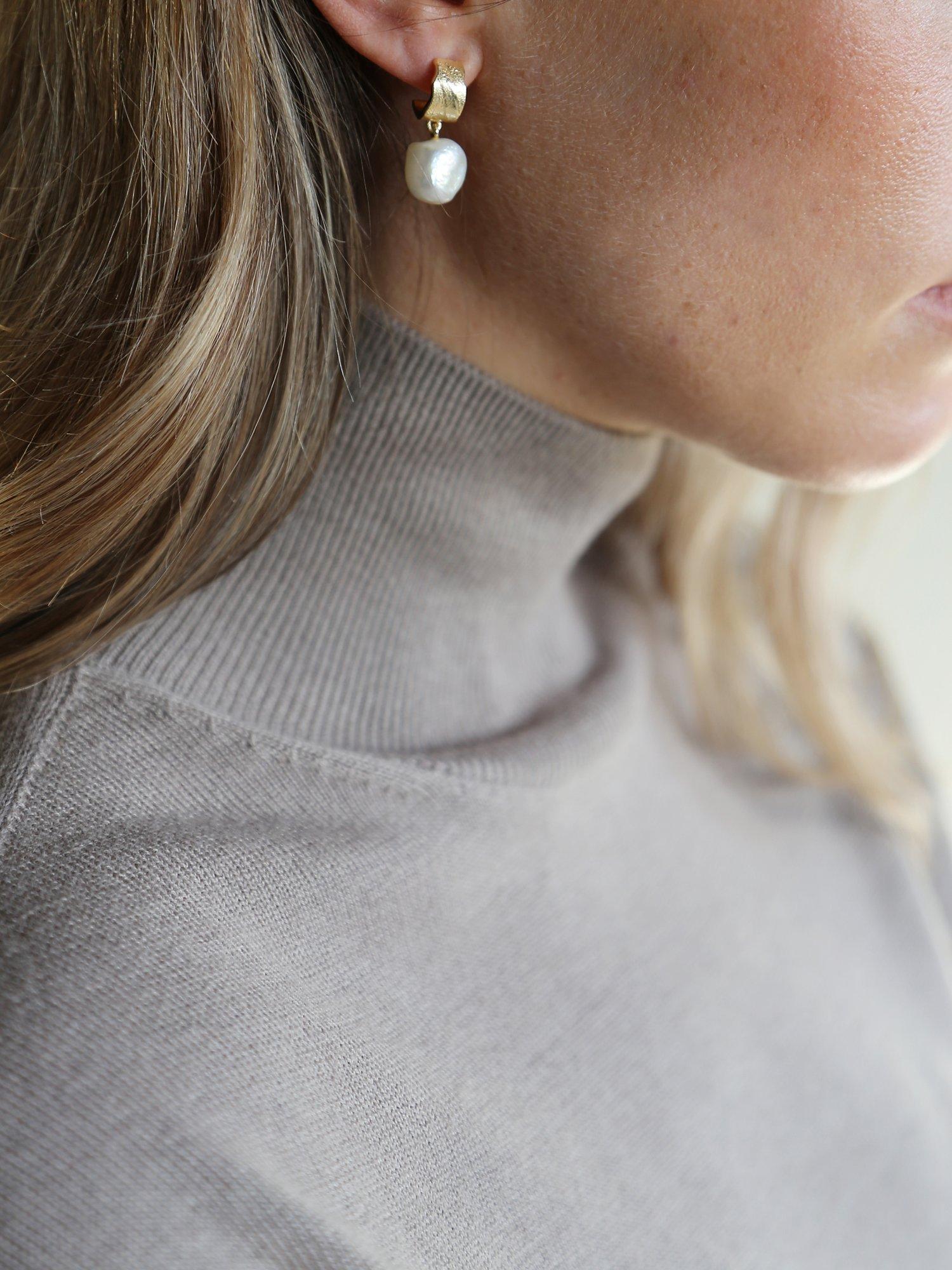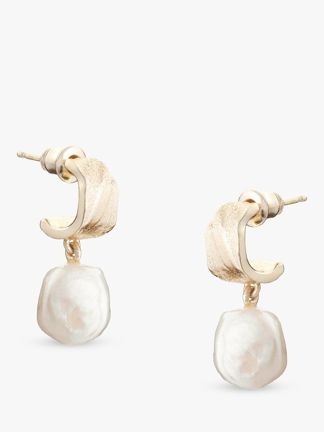 A gorgeous textured huggie hoop featuring a stud back and a freshwater pearl drop. Polished Brass with Gold Plating, each freshwater pearl is natural and hand selected, variations in size and shape should be embraced. All Tutti & Co jewellery comes with a branded cloth pouch.