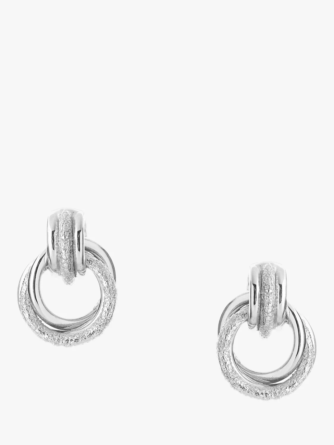 Combining textured and polished detailing, these Fuse earrings are simple yet eye-catching with their interlocking drop. Secured with post fittings that are for pierced ears only.