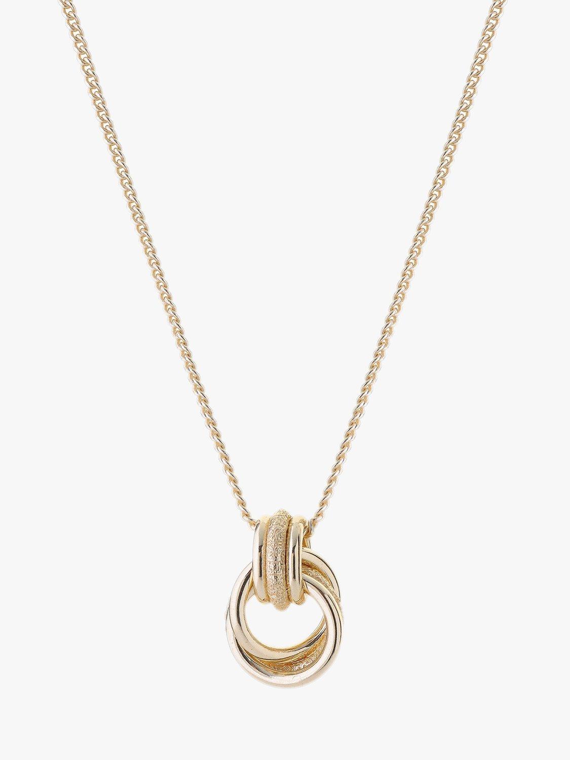 This contemporary necklace features an interlocking pendant design in a textured finish. You can adjust the length with the slider bead. Style on its own or layered with other pieces.