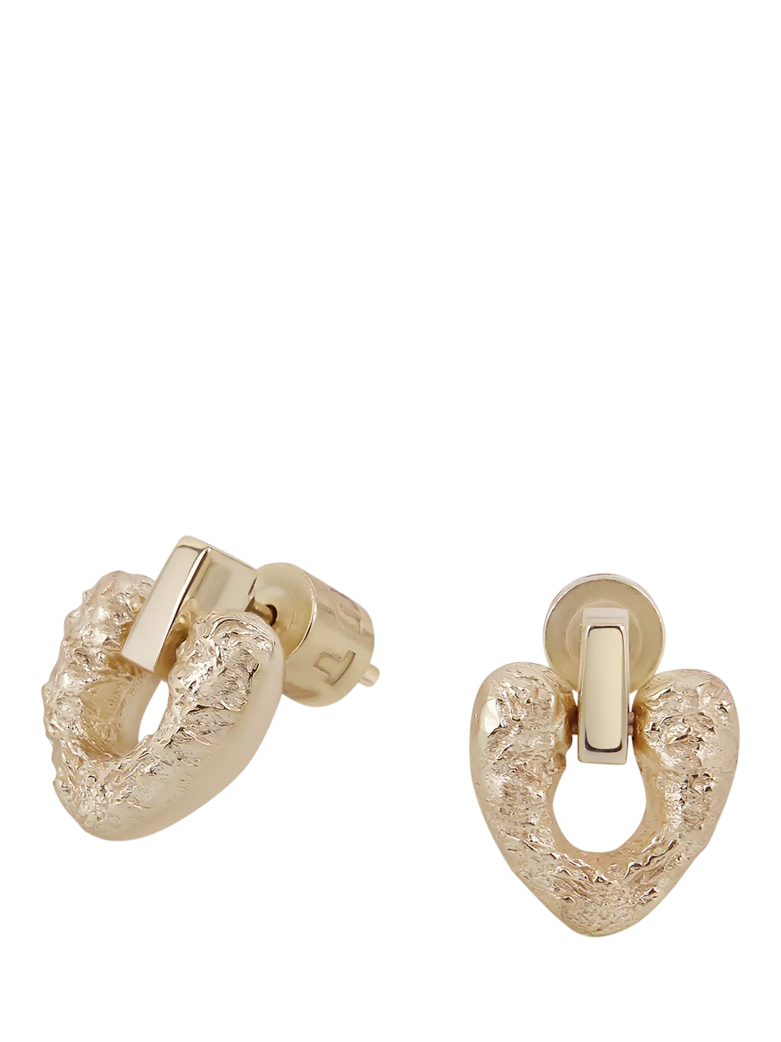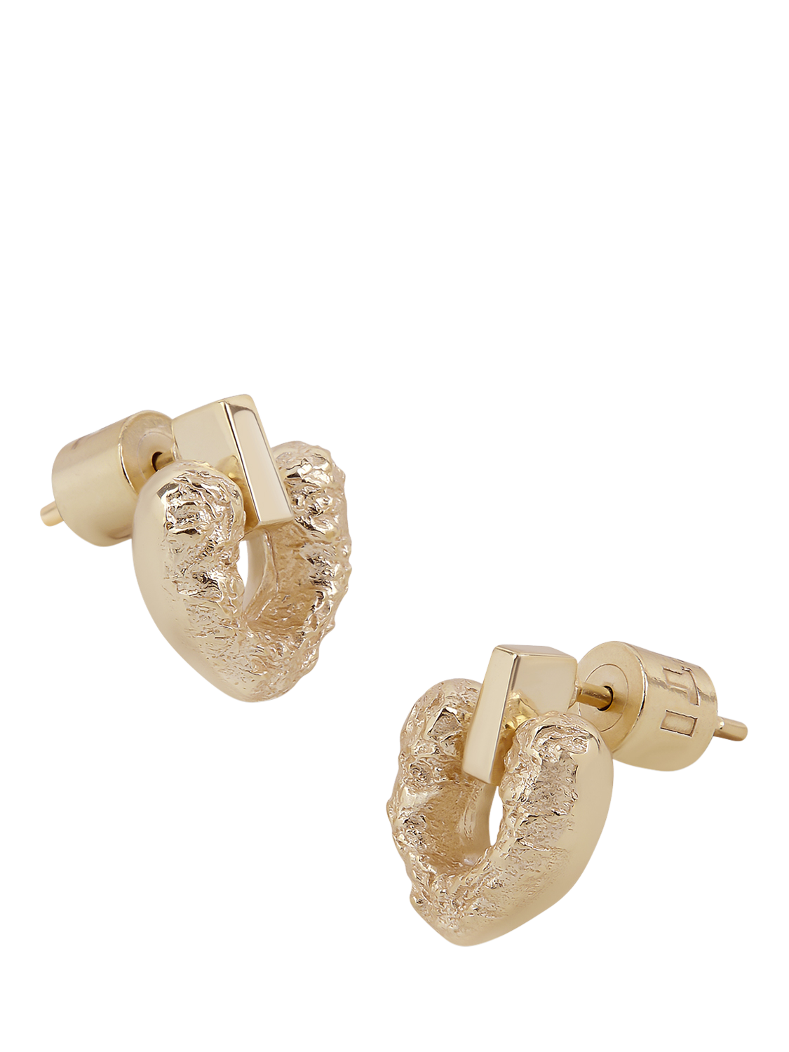 Heart drop stud earrings in a textured finish. Drop 1.3cm.