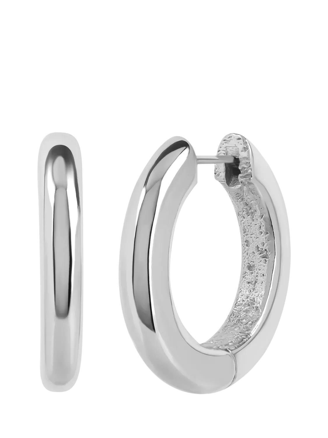 The staple hoop finished in with a polished outer and textured inner. Height: 2.5cm, Front Width: 0.43cm.