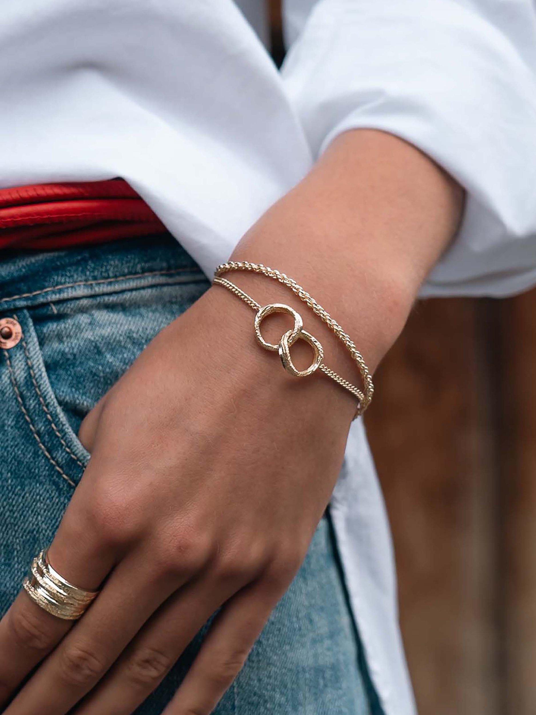 Interlocking hoop bracelet with a textured surface. Handcrafted from recycled and traceable materials.