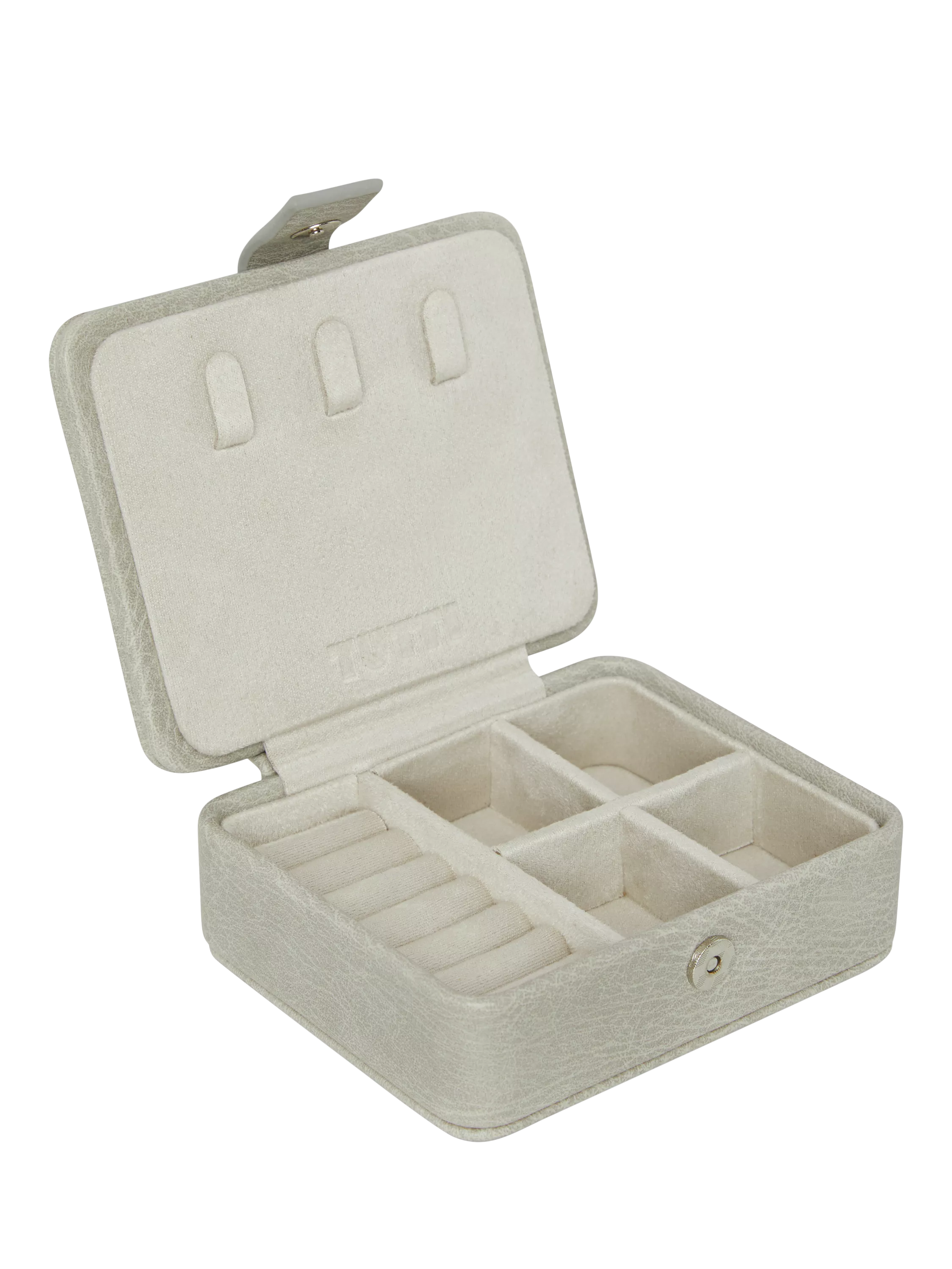 Perfect for keeping your favourite pieces safe, organised and looking their best, at home or away. Designed with six spaces for rings, three hooks to keep your necklaces or bracelets tangle free, and four separated compartments.
