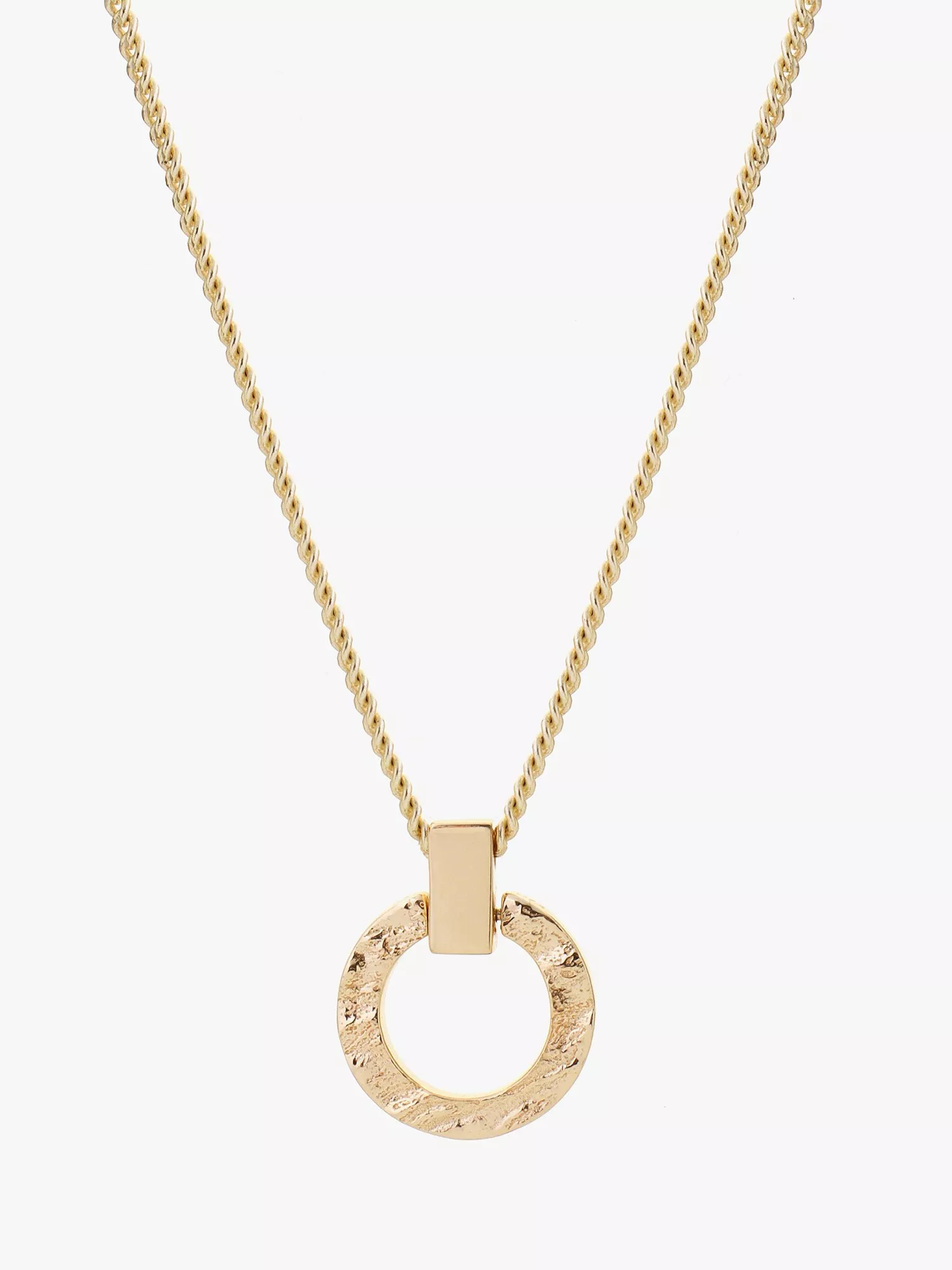 Perfect as an everyday classic look, this gorgeous pendant necklace is designed with a smooth bar and a movable textured pendant for an elegant look. The necklace chain can be adjusted by gently moving the slider bead to your preferred length.