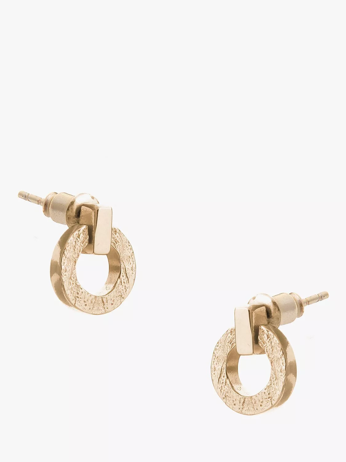 These gorgeous stud earrings are designed with a smooth bar and a movable textured circular pendant. Perfect as an everyday classic look, style with matching items from the Palm collection.