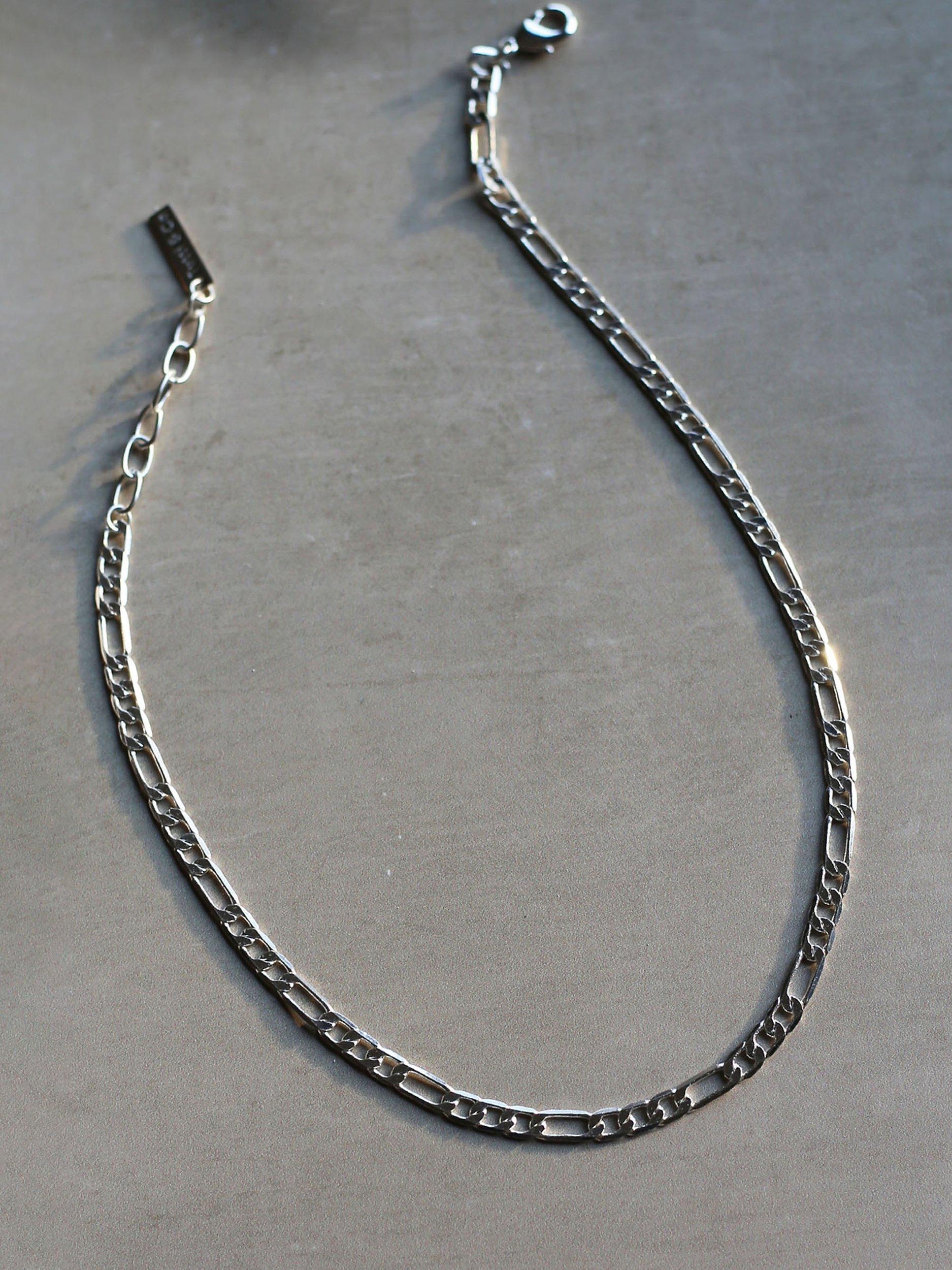 This simple style boasts traditional Figaro chain links. Handcrafted from recycled, traceable material and finished with an anti-tarnish, water resistant coating. Wear alone or layer up with your favourite pendant.