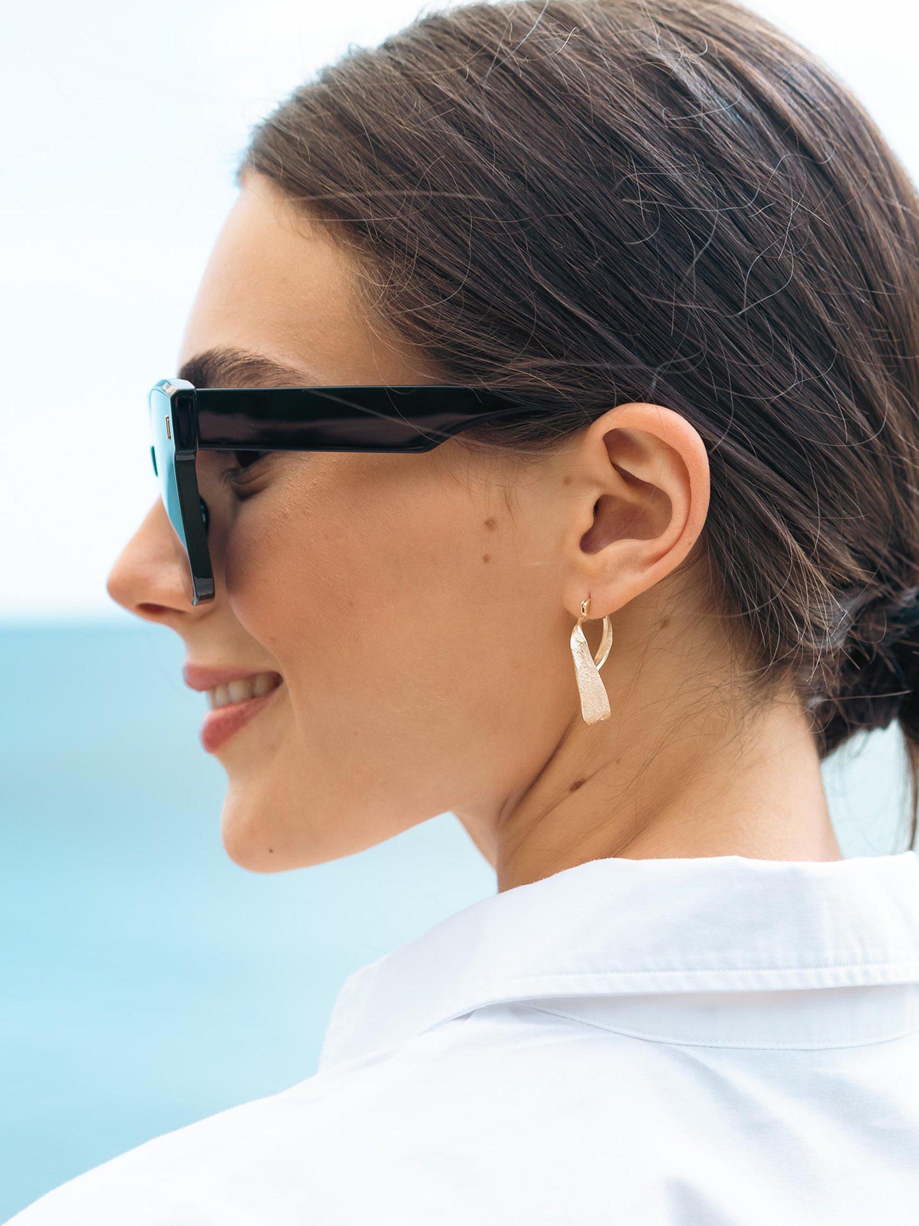 Every pair of earrings arrives in our signature branded drawstring fabric pouch, made from recycled materials.