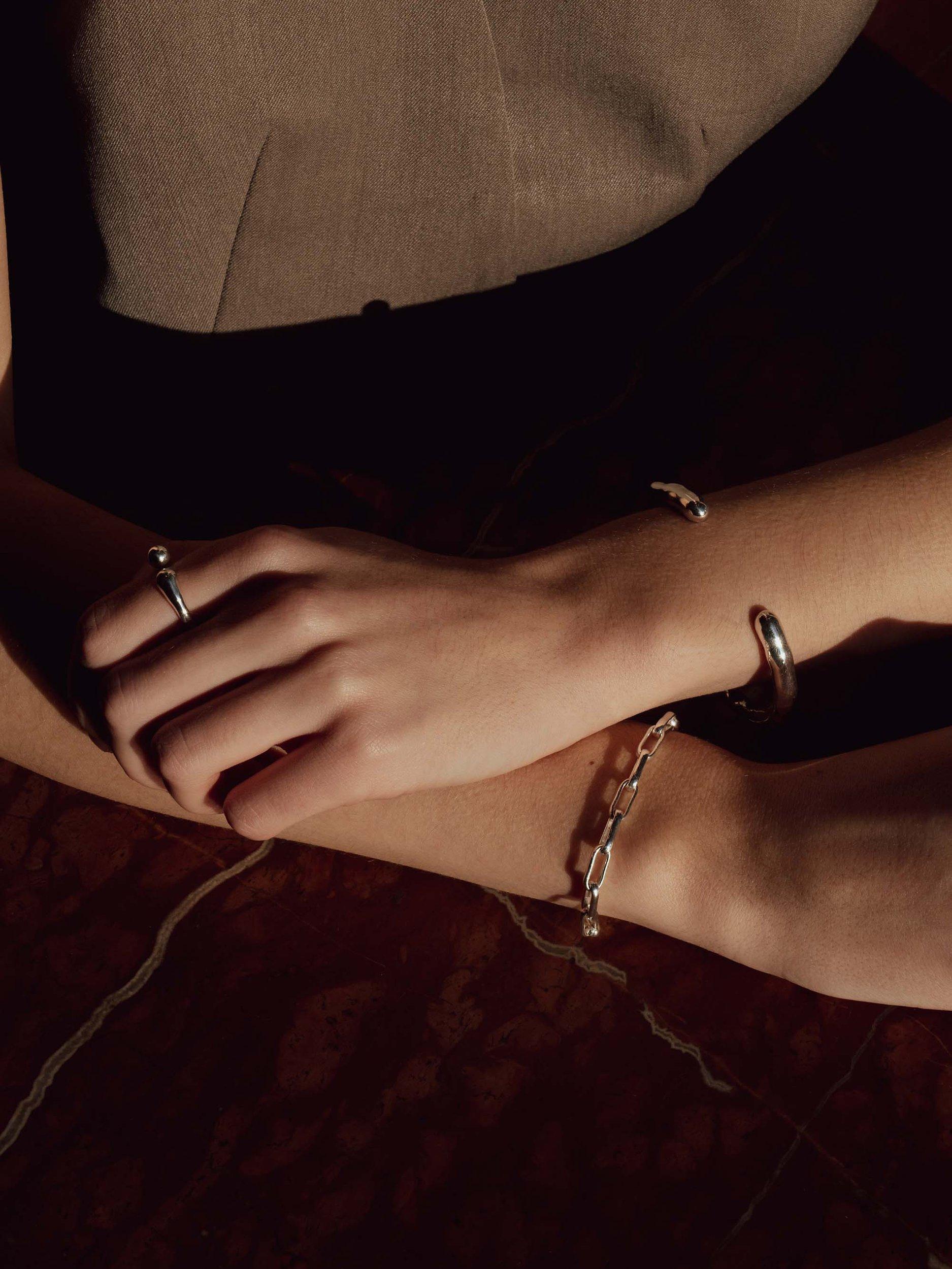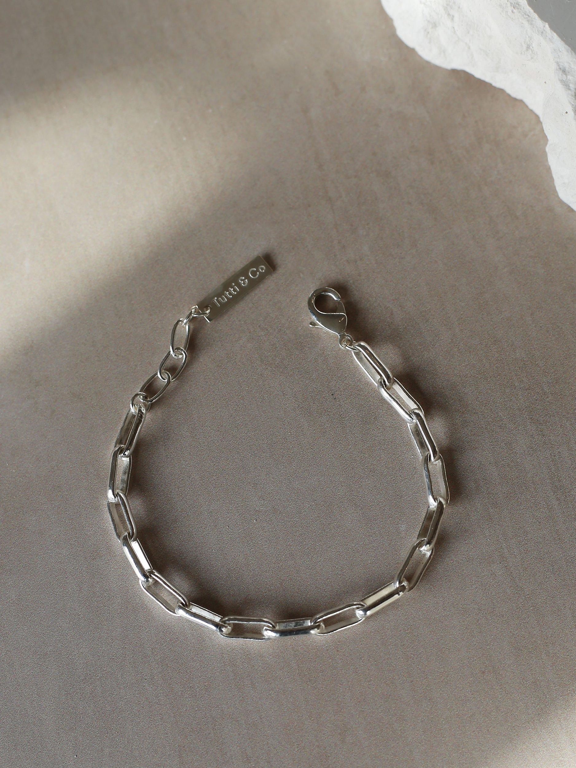 A classic link chain bracelet. Wear alone or layer up with your favourite bracelets and bangles. Finished with an anti-tarnish, water-resistant coating. Presented in a recycled fabric pouch.