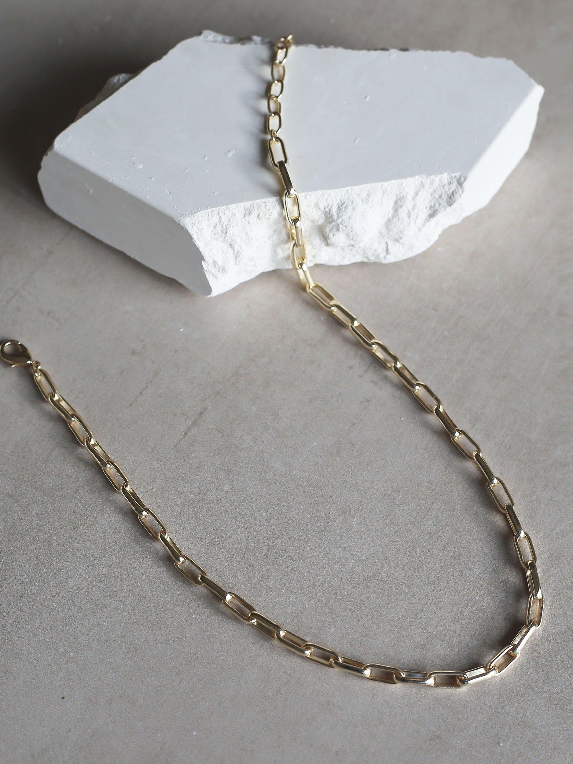 A simple style made from large chain links.Handmade from recycled materials and finished with an anti-tarnish, water-resistant coating.