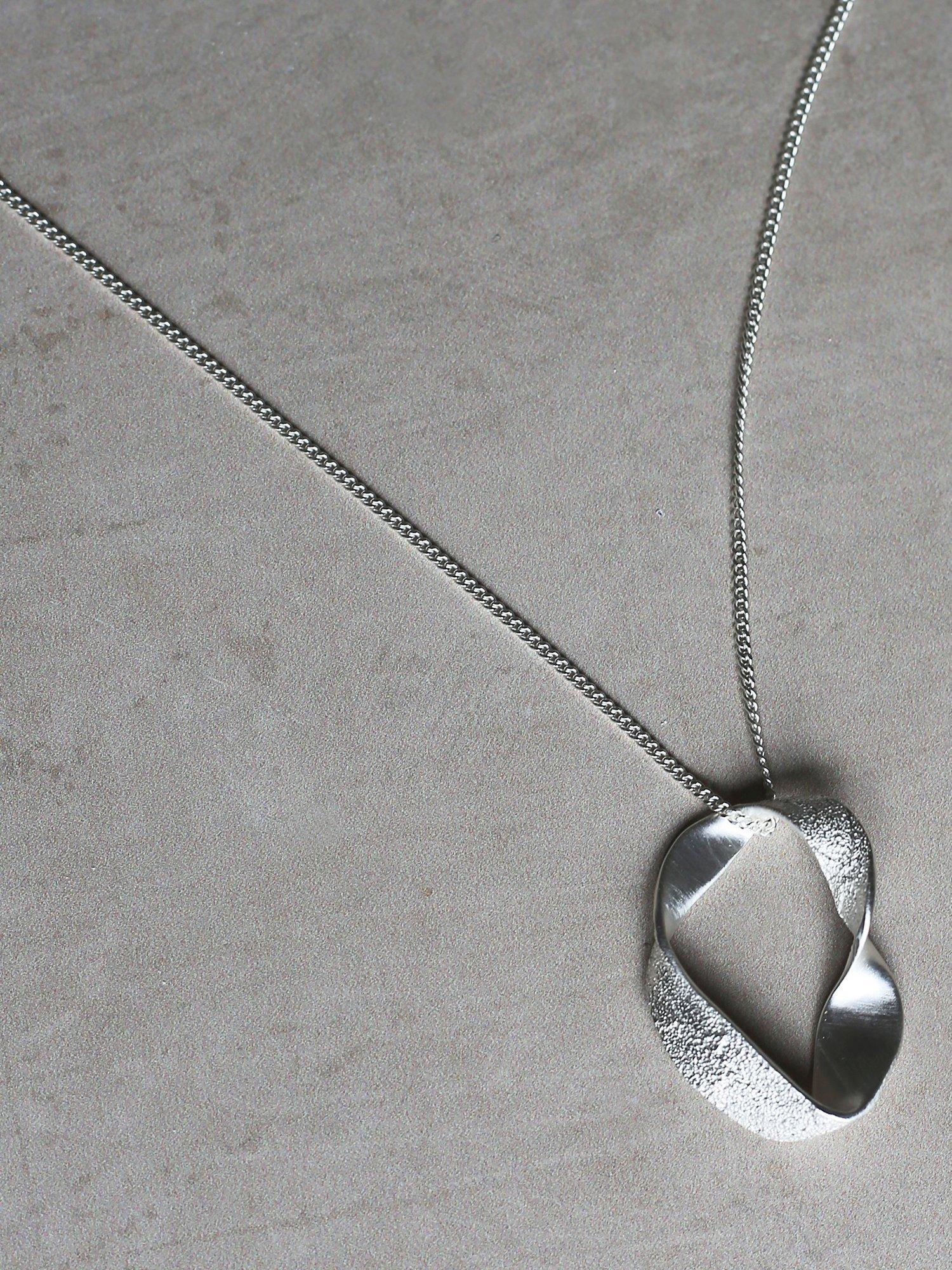 Showcasing a striking pendant, designed to a softly-twisted shape to expose opposing textured surfaces – one brushed and smooth and one rippled, this necklace from Tutti & Co is inspired by coastal surroundings.