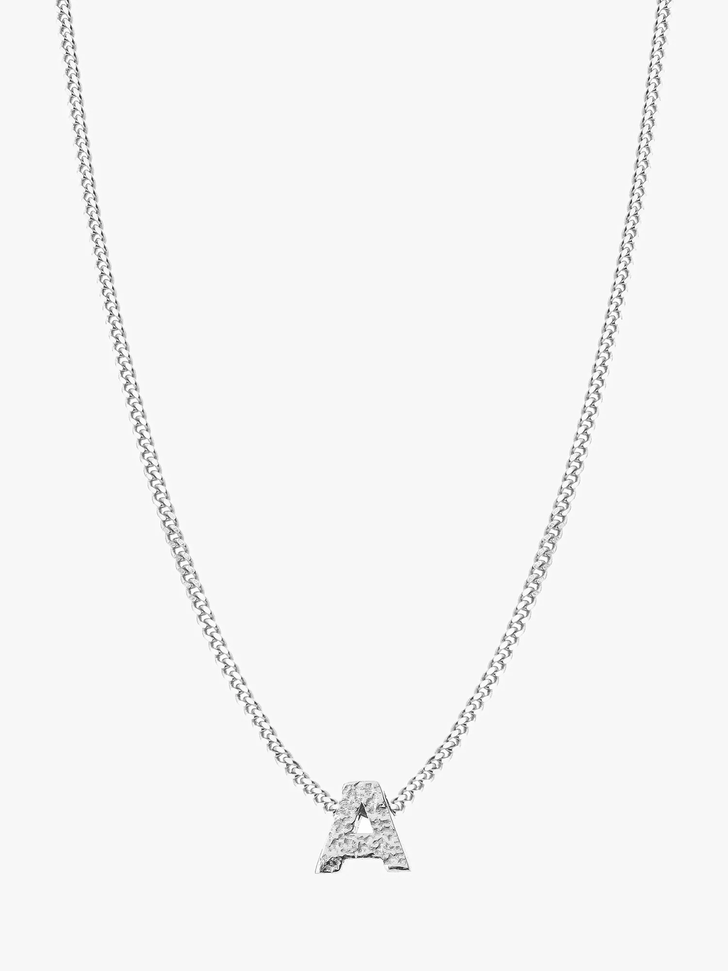 Inspired by the ruggedness of the coast, this necklace has a small textured initial pendant hanging from a curb chain. Choose the letter that's personal to you or your loved one. Handmade from recycled materials and finished with an anti-tarnish, water-resistant coating.