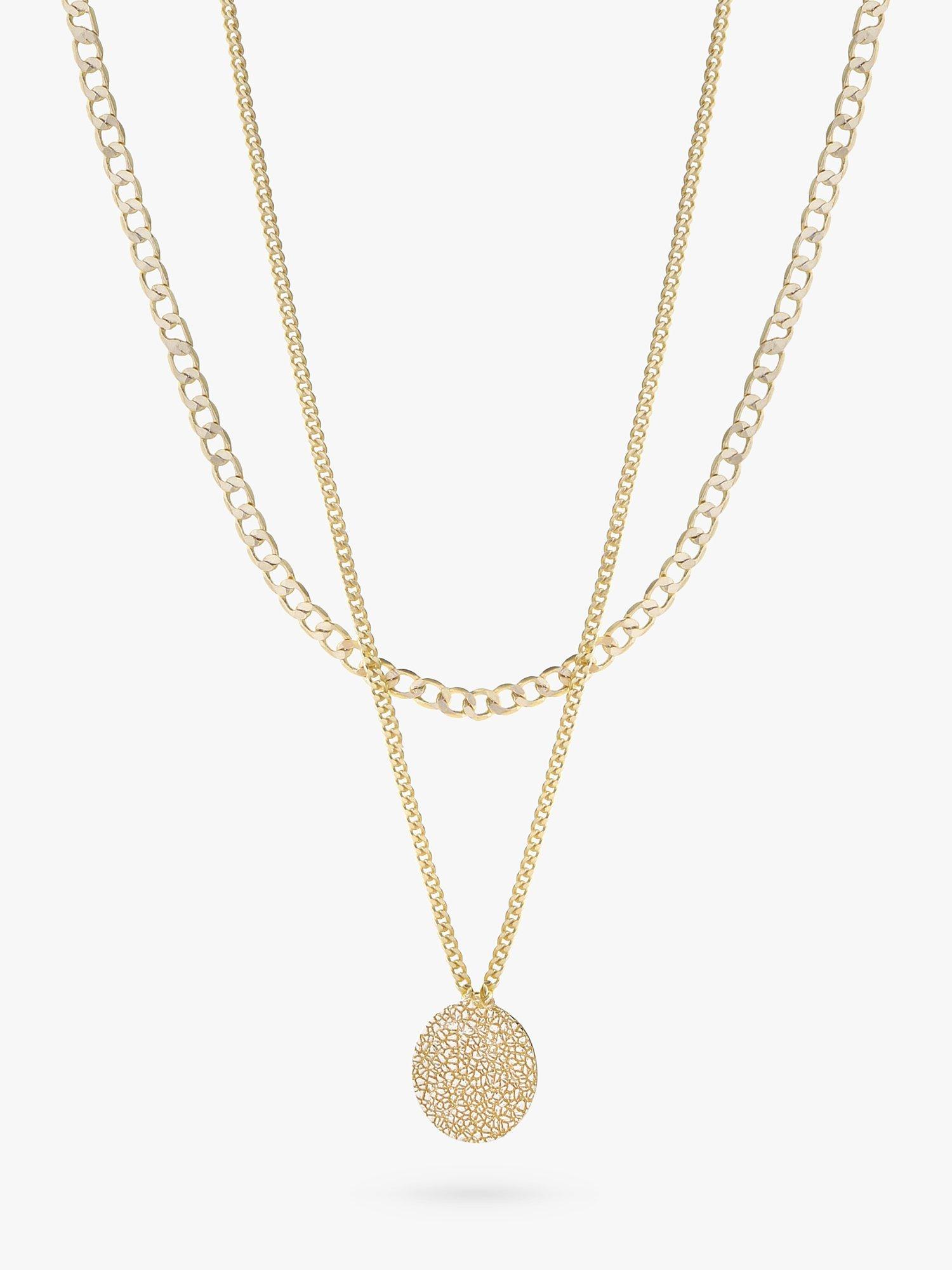 An effortless layering piece, this double chain necklace by Tutti & Co blends two chains in different sizes for more impact. The slim chain suspends a small textured disc charm.