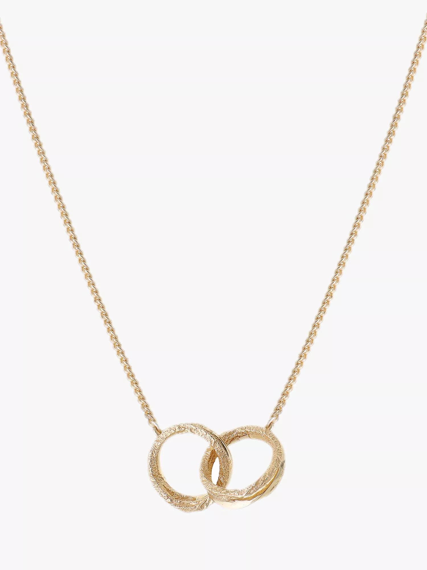 Interlocking pendant with textured surface. Adjust to desired length with slider bead. Handcrafted from recycled and traceable materials. Presented in a recycled fabric pouch. Length: 50.2cm Pendant. Height: 1.6cm.