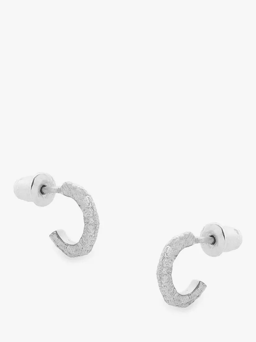 Small stud back hoops with a textured surface. Suitable for pierced ears only.
