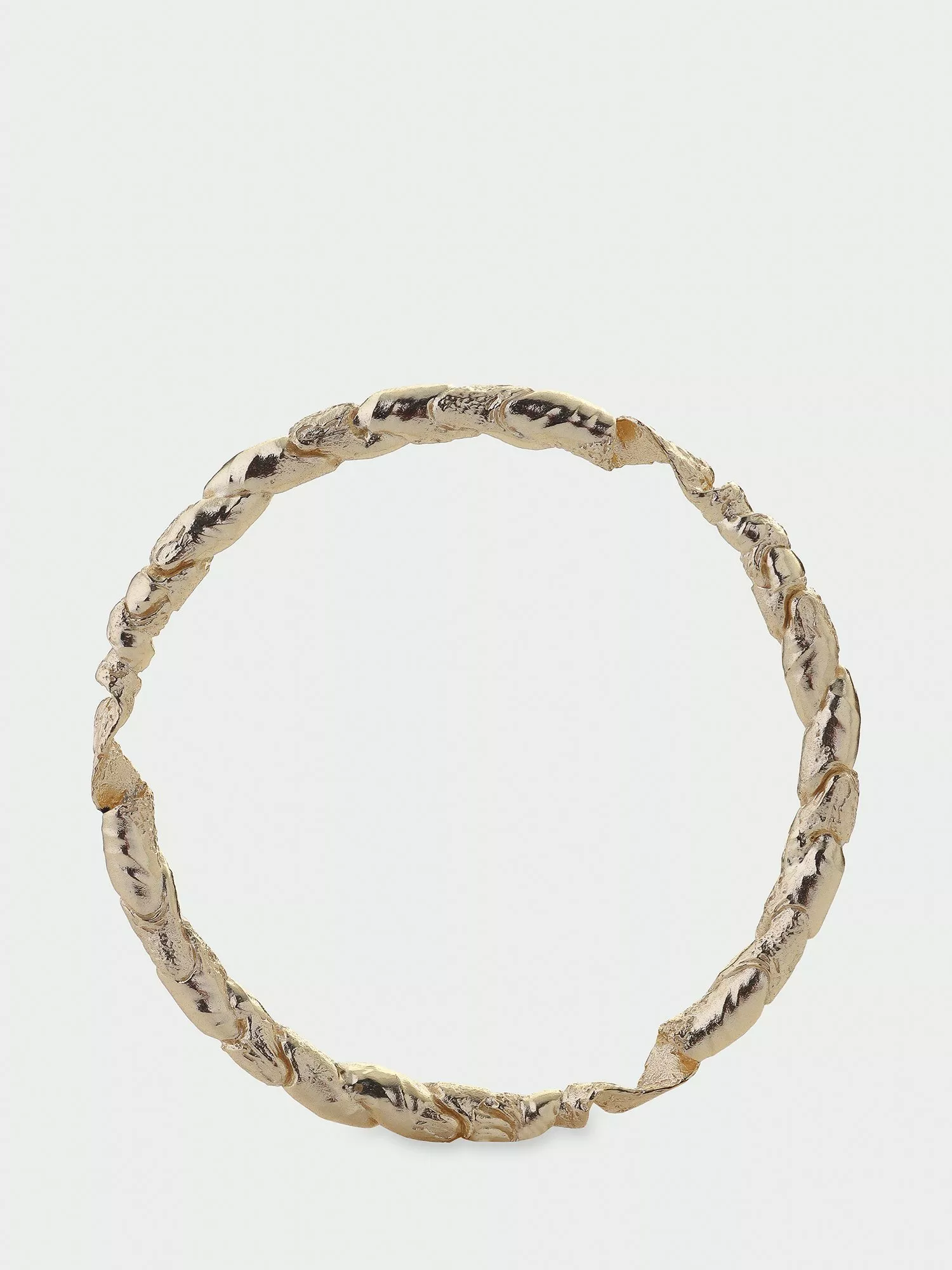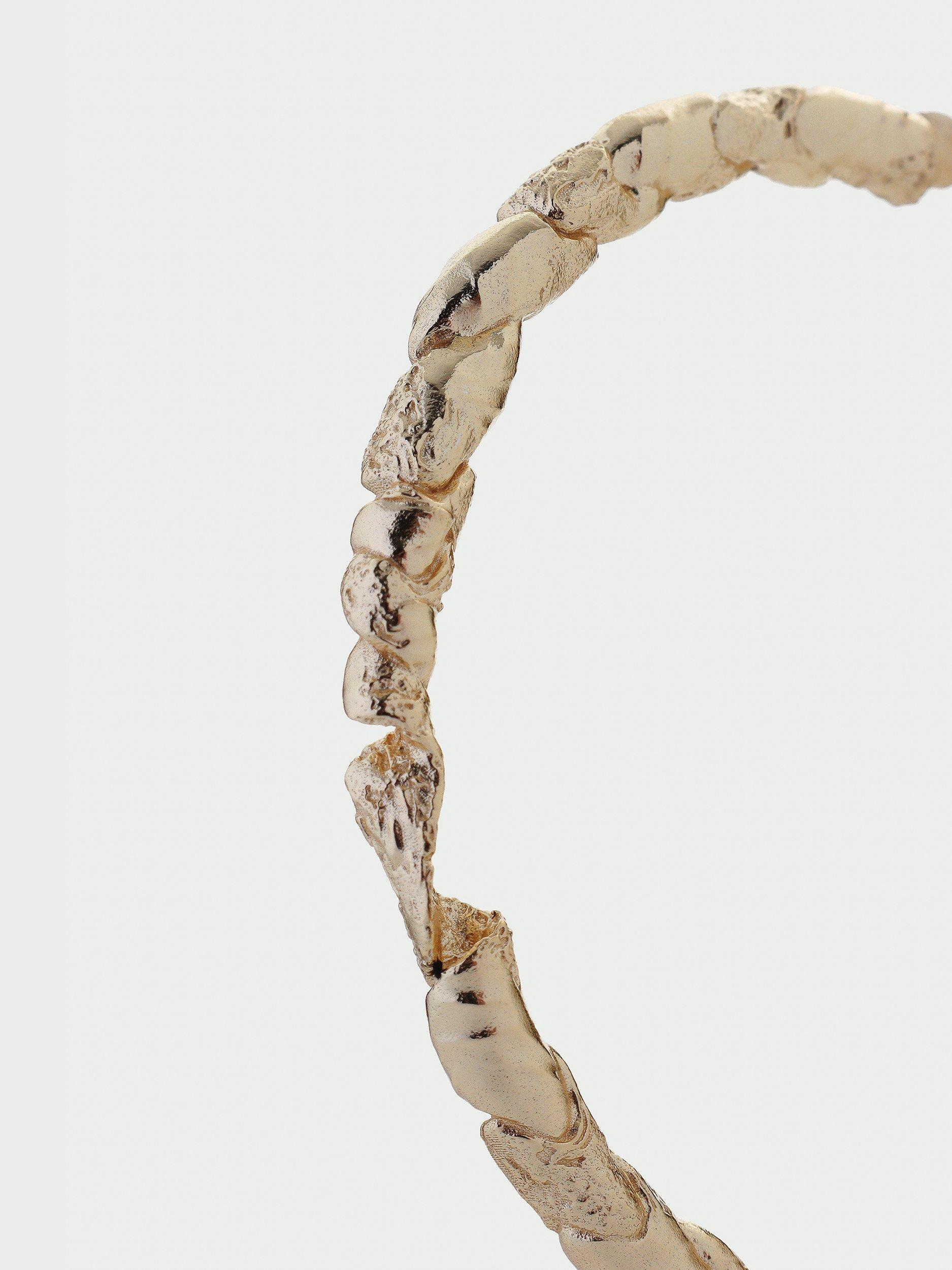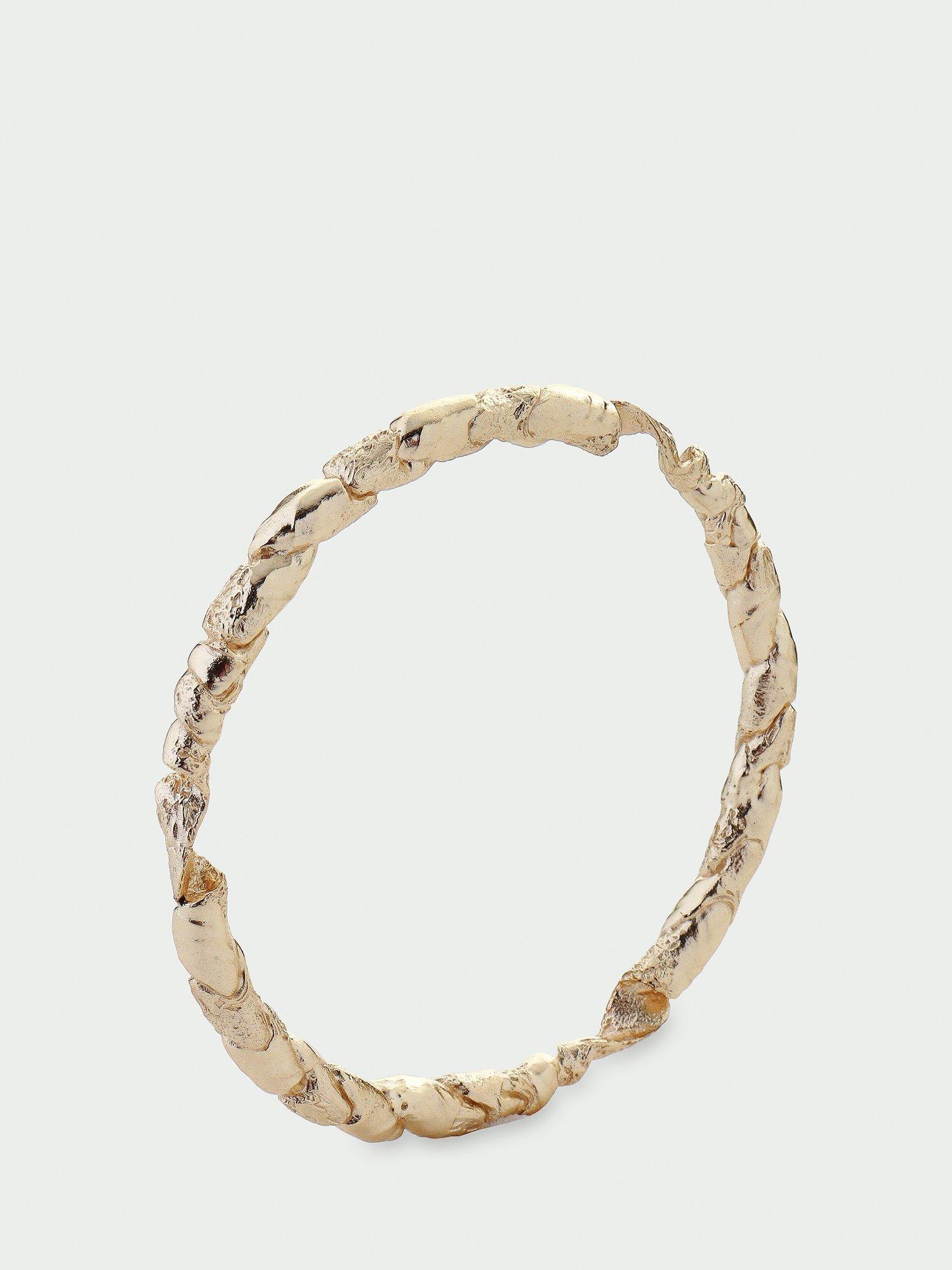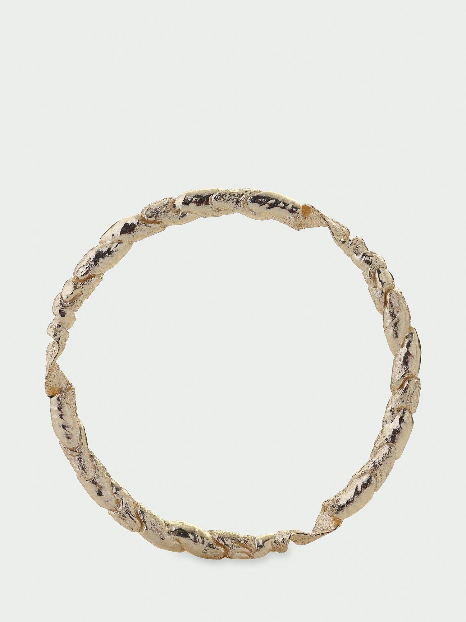 This textured twist bangle is handcrafted from recycled brass base, and finished with an anti-tarnish, water resistant coating.