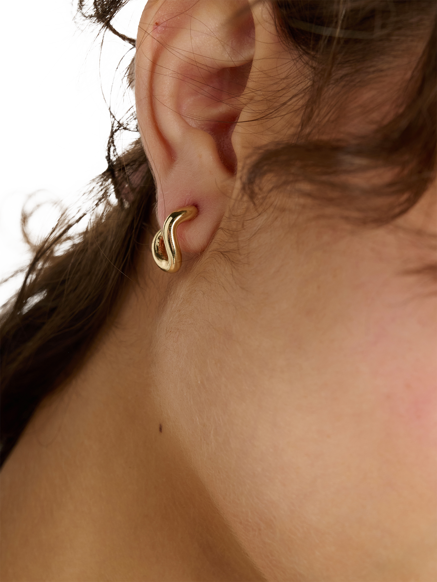 Waved hoop earrings with a textured to polished finish. Height: 1.65cm, Front Width: 0.3cm.