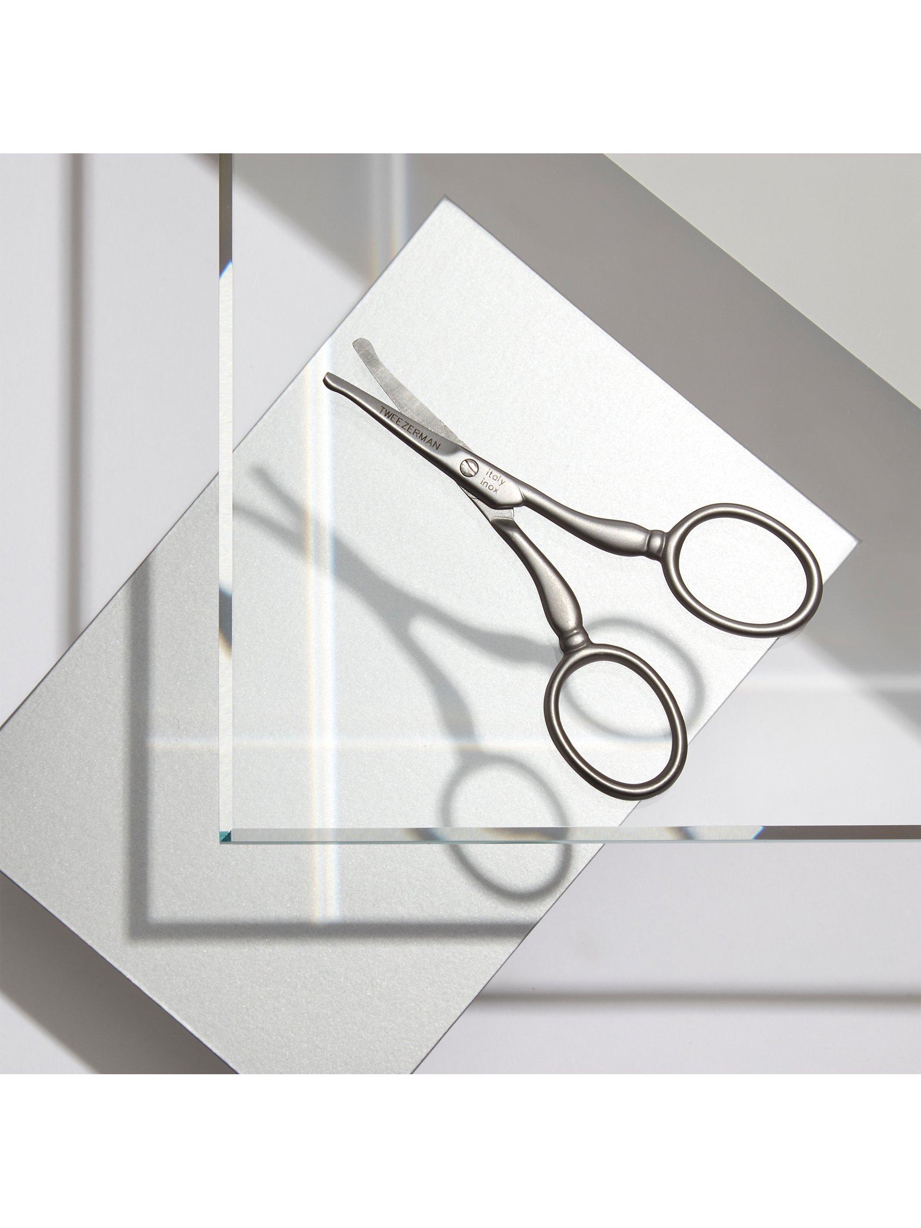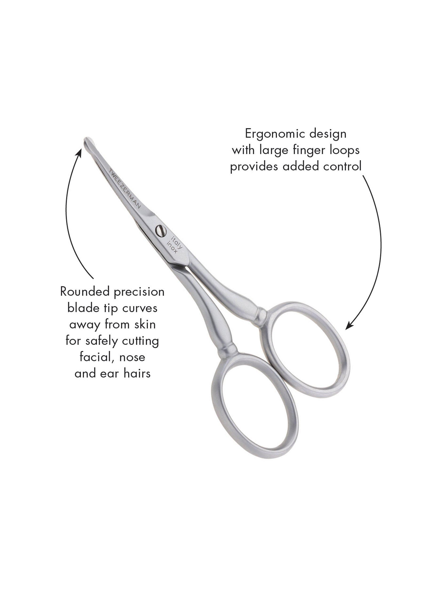 Trim strays and neaten facial hair with precision. Rounded blade tip curves away from skin for safely cutting facial, nose and ear hairs. Made from stainless steel.